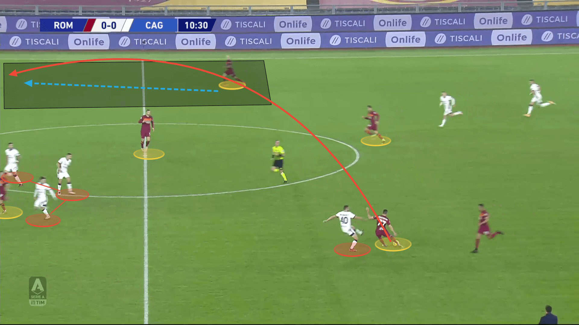 His movement is also key to Giallorossi’s counterattacking actions.