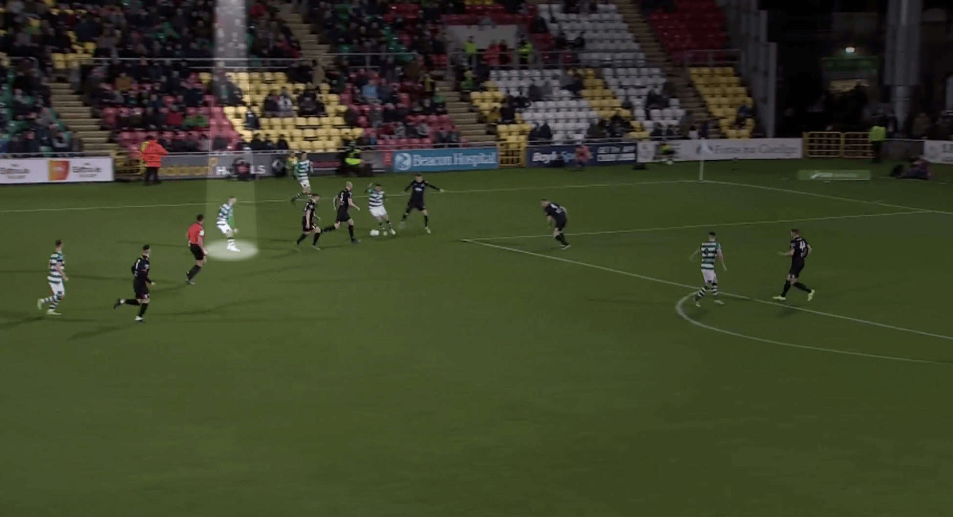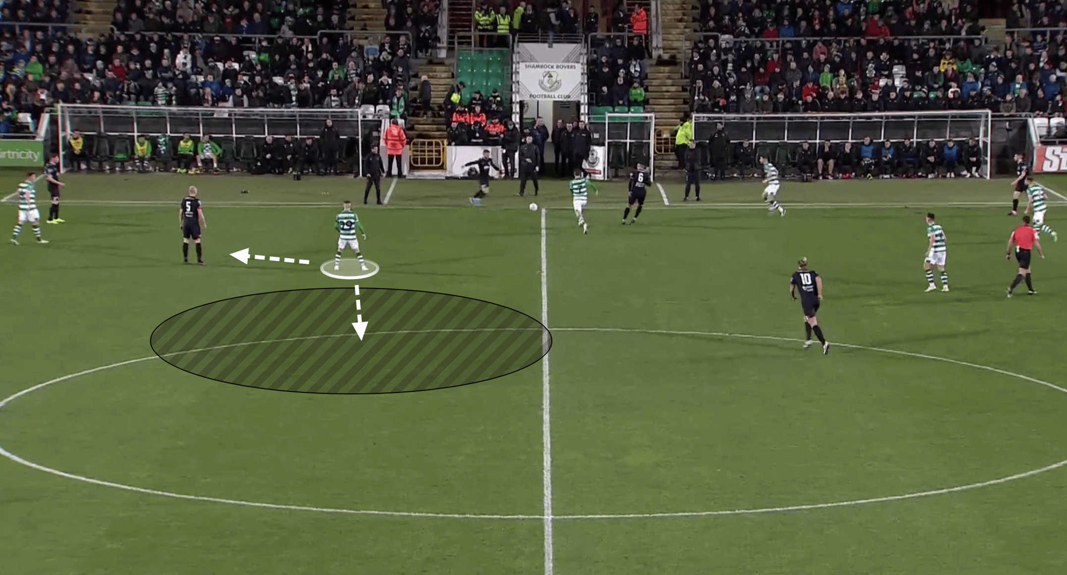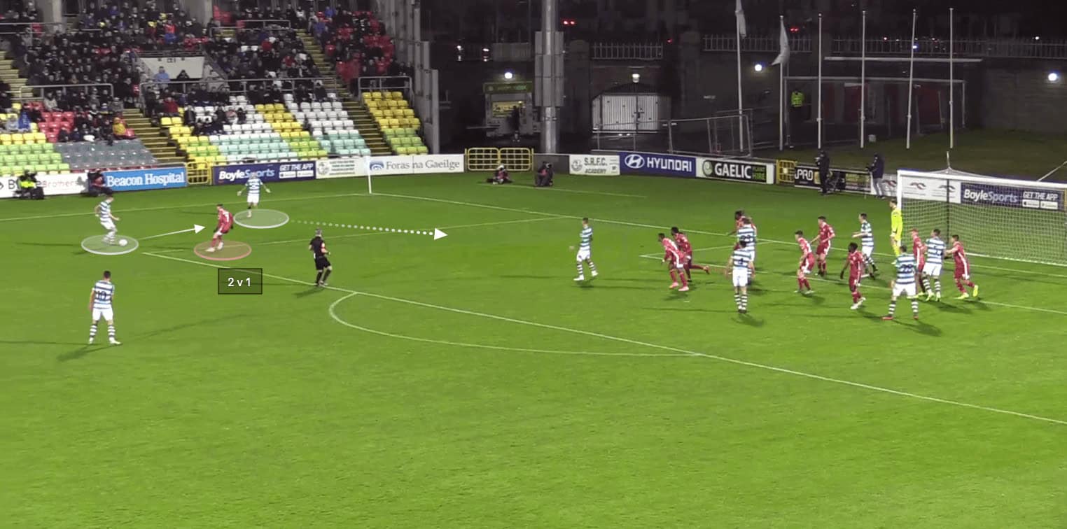 In the image below, we can see Byrne completing this pass successfully, leading to Rover’s first goal in their recent game this season against Dundalk.