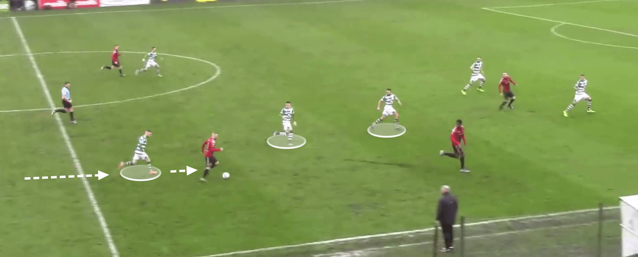 In this movement, Byrne controls the attacking play in the final third as he is now in a position to support the attacker in receiving the ball back in free space.