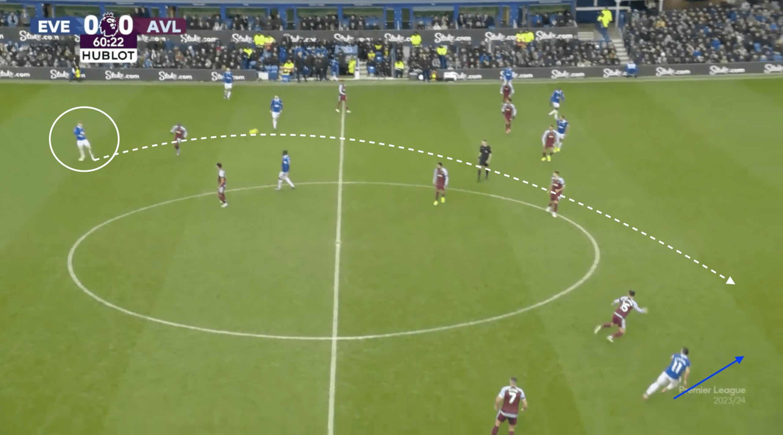 There are signs that this area of his game can be improved upon, with his long passing often looking to release wider players into isolated scenarios or dropping it between the lines for Calvert-Lewin or Beto to hold up.