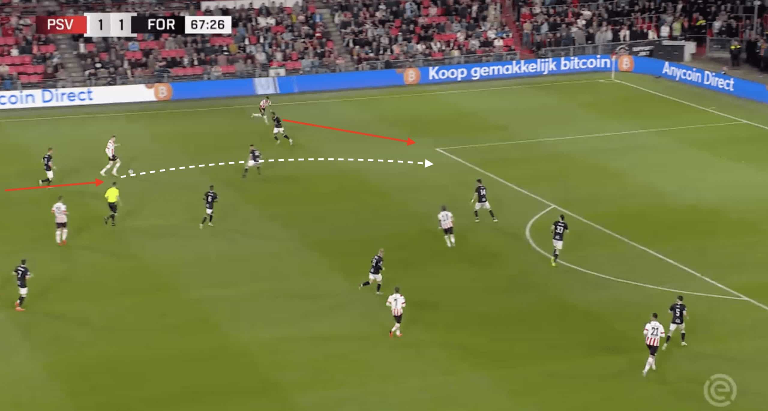 For example, his passes into the final third jump from 1.60 for Everton to 3.57 at PSV, with his overall passing completion dropping from 86.9% last campaign to 79.1% this year.