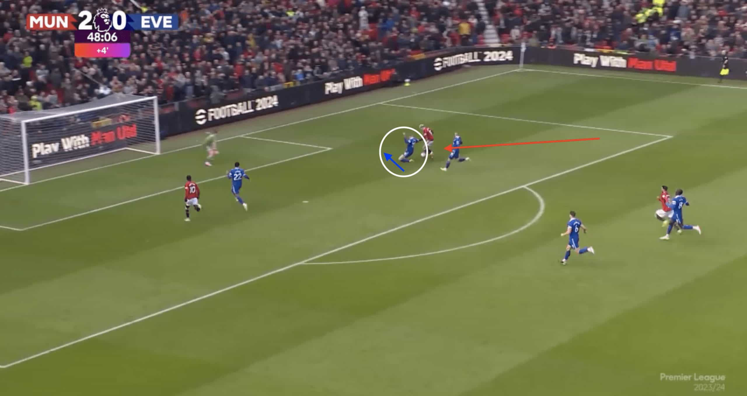 In their recent trip to Old Trafford, Garnacho can be seen finding space in behind and progressing the ball with intent to drive into the penalty area.