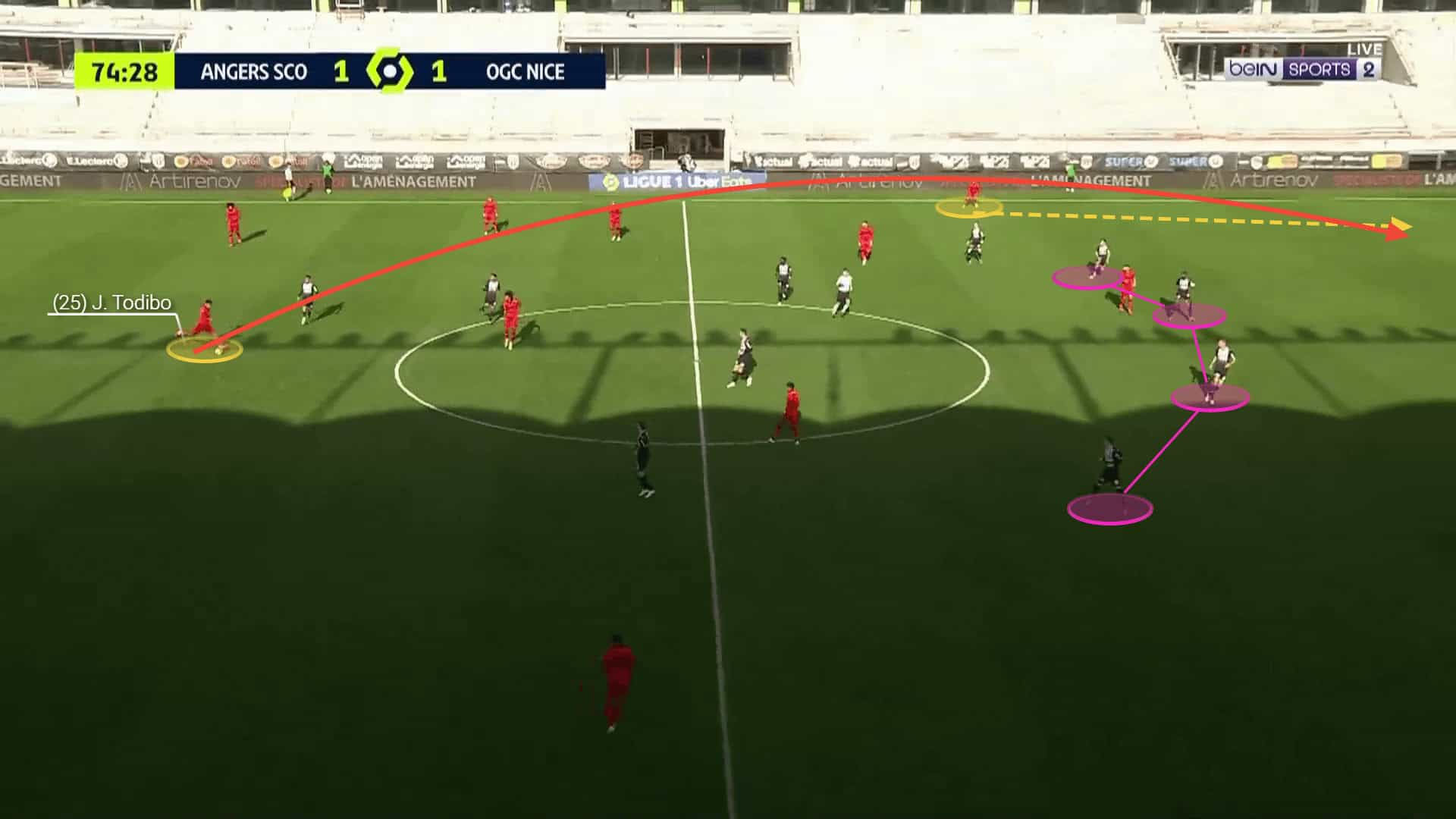 As our analysis shows, Todibo’s abilities on and off the ball are highly valued in the team’s current set-up as he proved his importance with his tactical and positional awareness and his precision in defence.