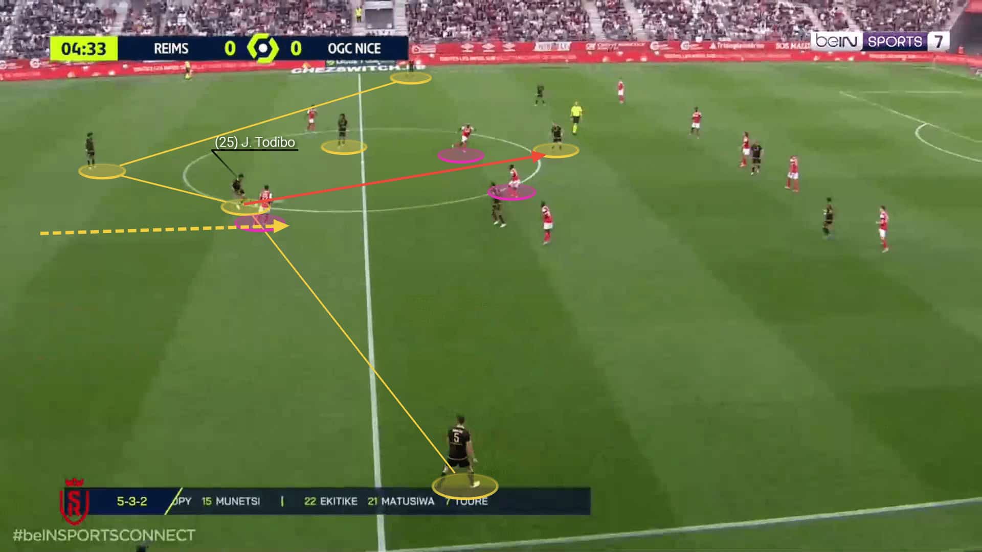 Nice’s defensive line is very highly positioned with Todibo being involved in the most frequent passing links and retaining possession at the back.