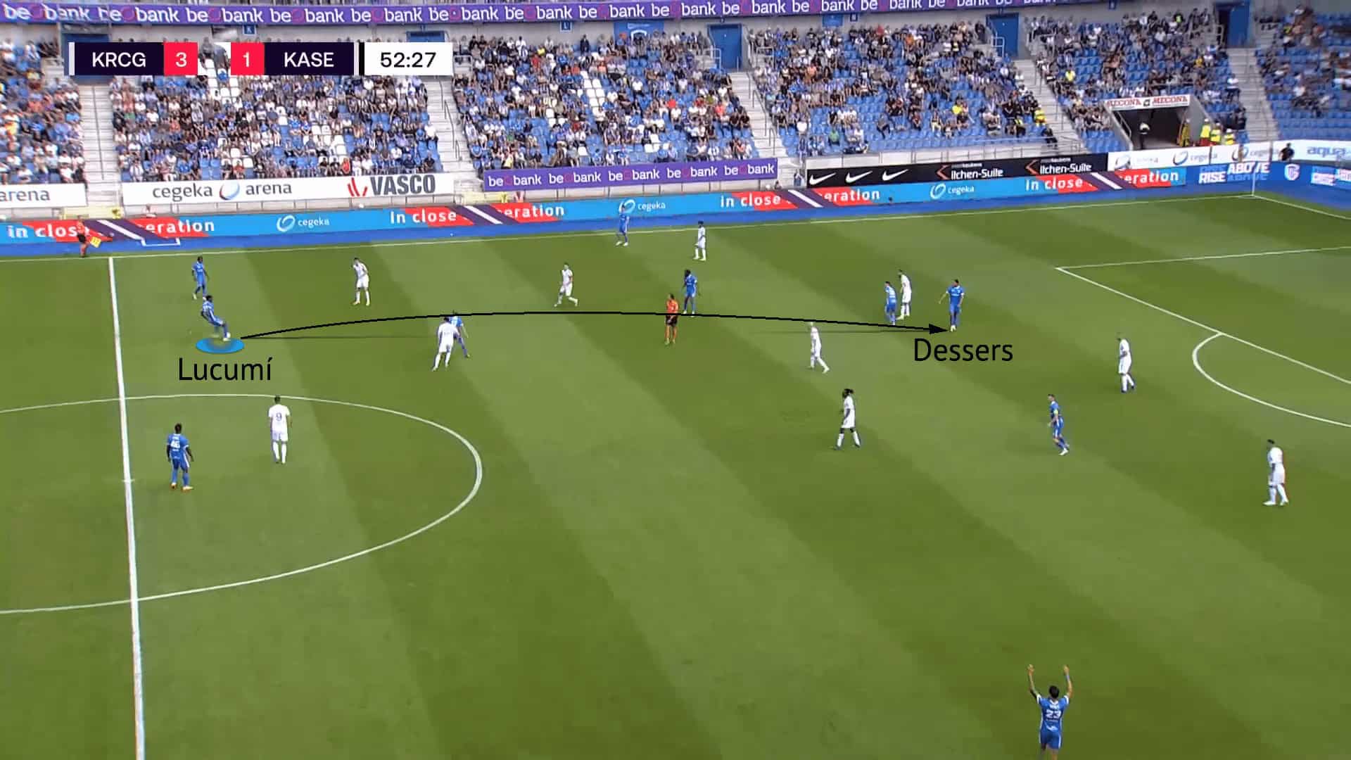 The image above displays one of Lucumí’s brilliant diagonal long passes against Standard Liège.