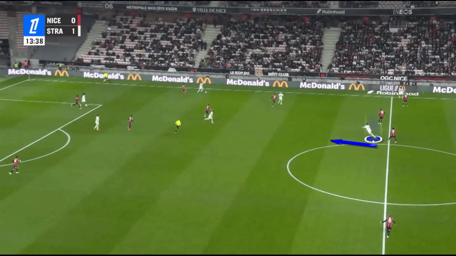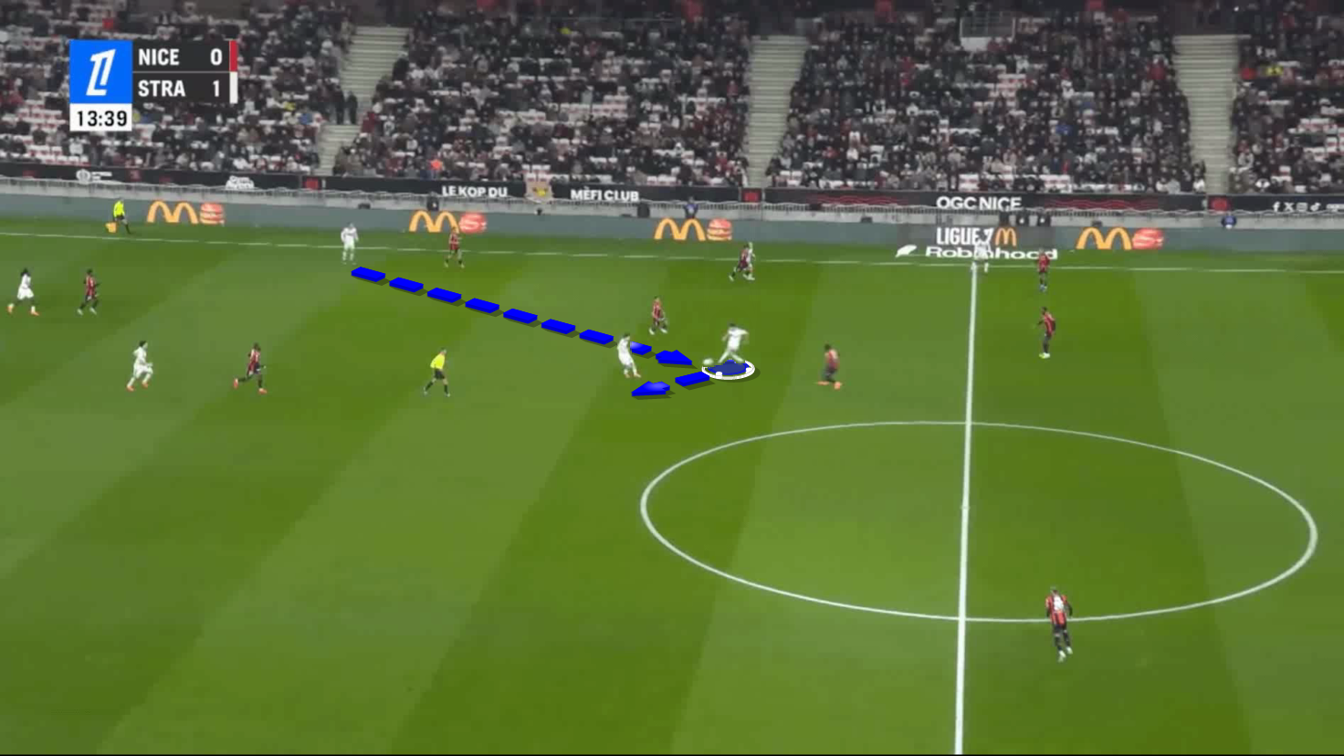 His hold-up play is a tool through which Strasbourg can gain territory and put pressure on the opposing defence.