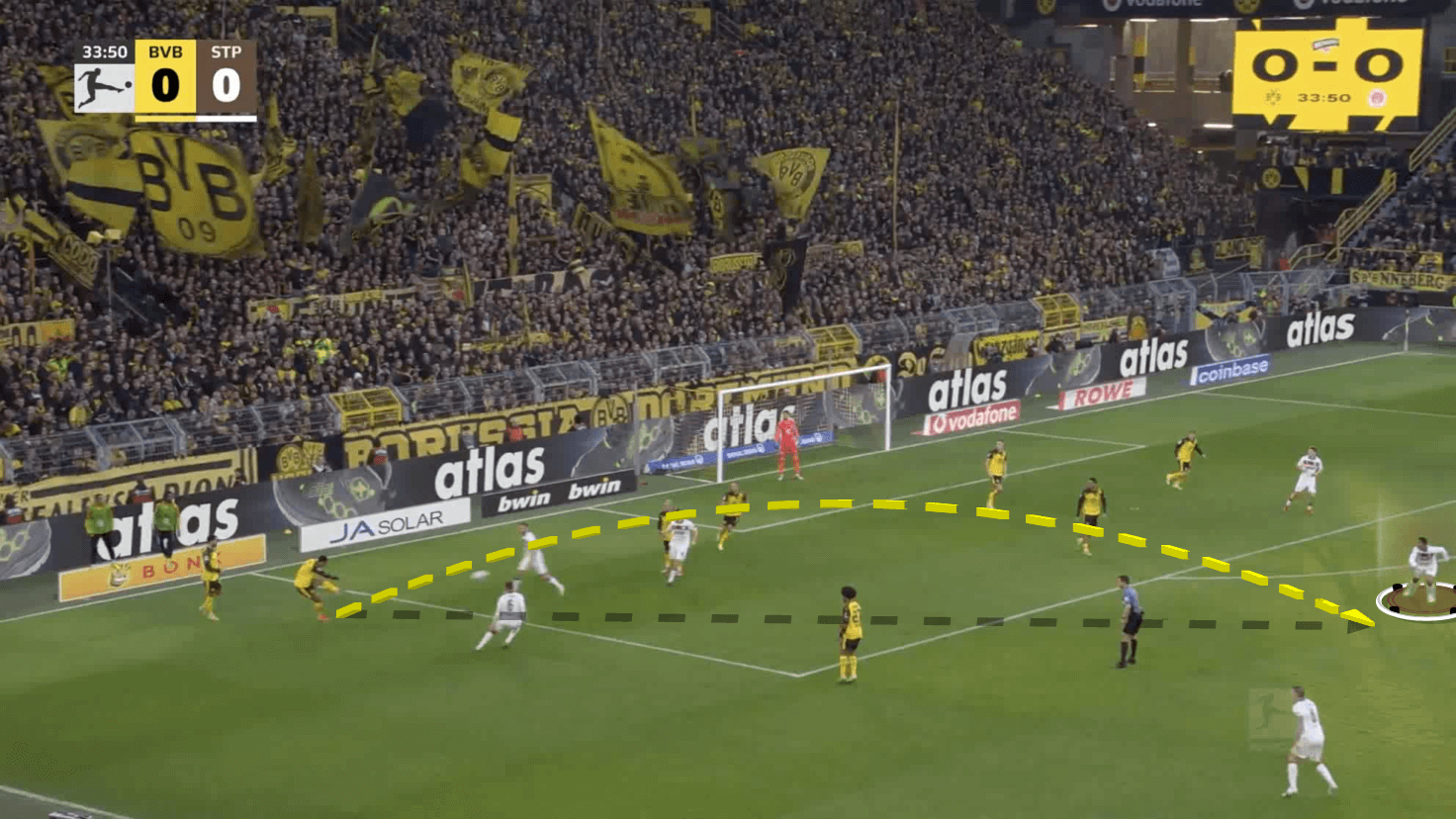 We find him in a similar position on the right rather than the left as St. Pauli aim to break down Borussia Dortmund in the clip above.