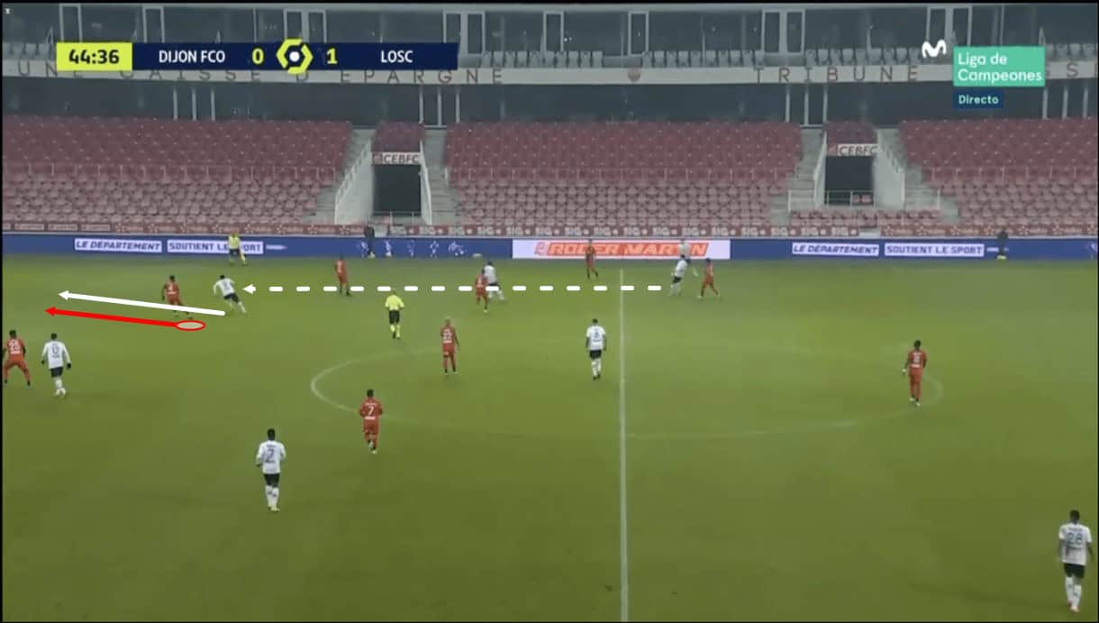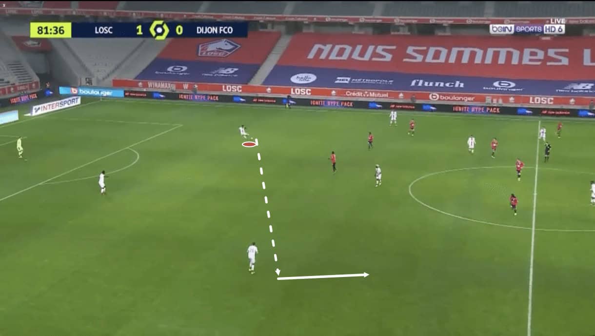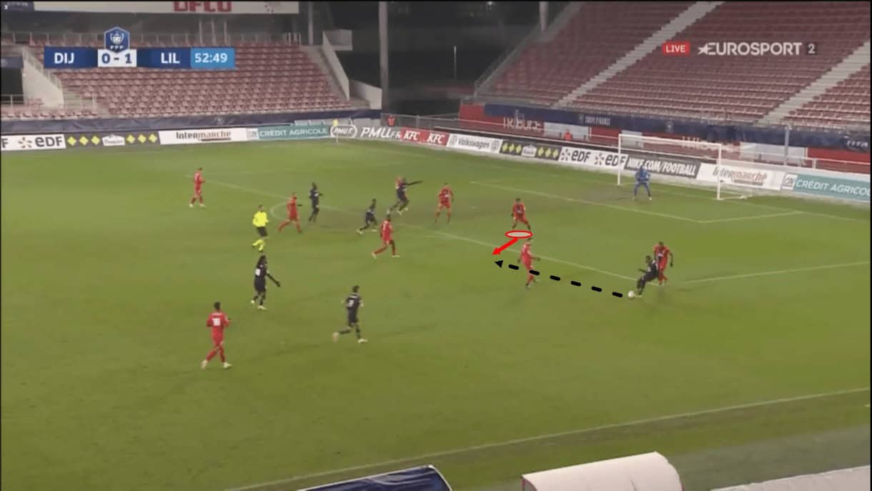 Following this image, the Englishman managed to get in front of the intended ball-receiver, cut off the passing lane and comfortably win possession back for Dijon.