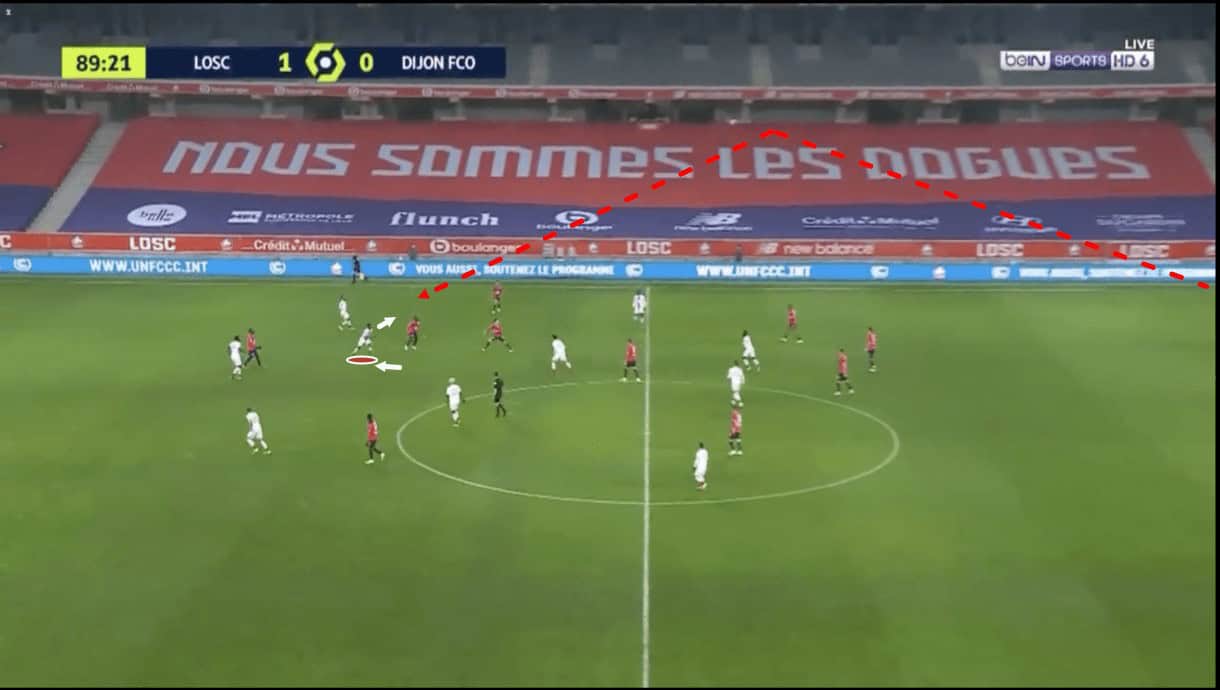 This helps Panzo to get above the Lille man with his jump, win the aerial duel and send the ball towards Dijon’s attackers.