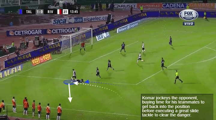 As alluded to above, Komar could improve his tackling even though, due to his style of play, it’s not really something he has to resort to often. Komar also lacks a bit of pace and can suffer when isolated against small nippy players but when he gets his long legs pumping he can usually make up the lost ground.