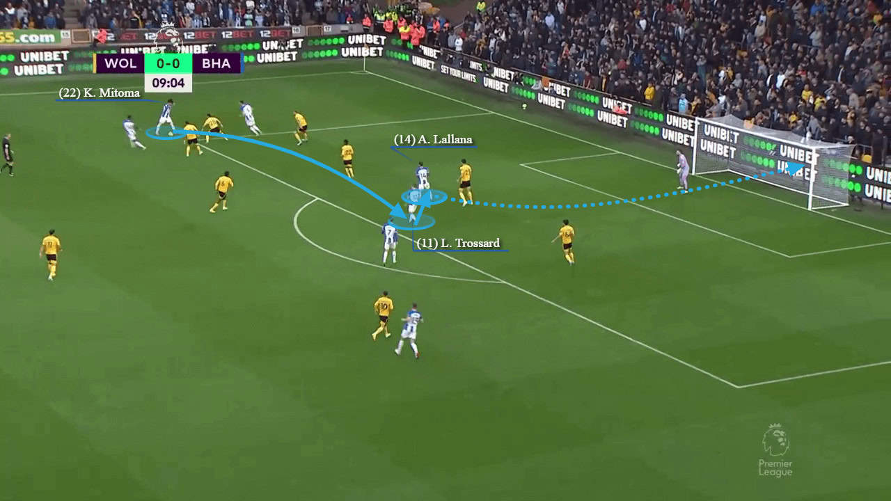 Trossard goes on to score the goal by rounding the keeper and gifts Mitoma his first Premier League assist.