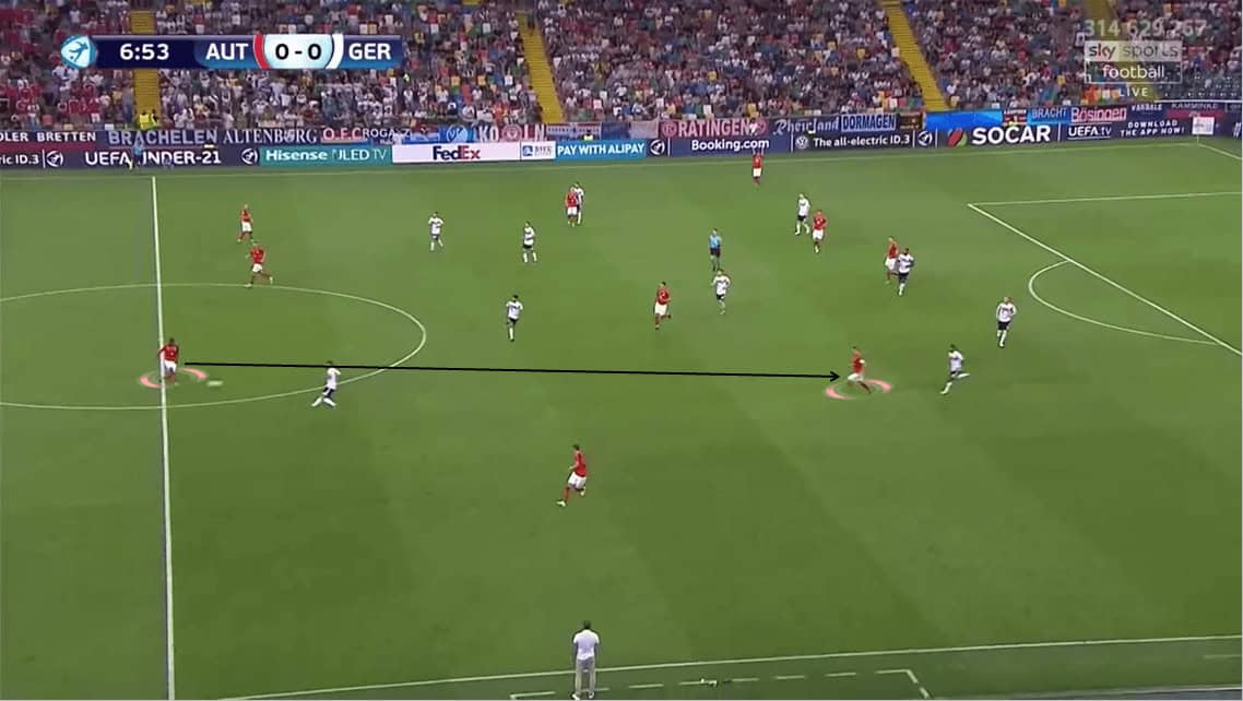 In some build-up occasions, either Lienhart or Dejan Ljubicic dropped into the left half-space, similar to the half-back.