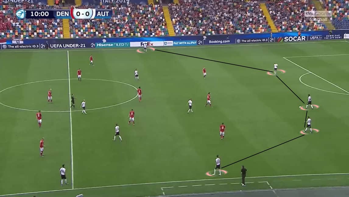 Among them, they created a passing triangle with the defensive midfielder, usually Daniel Baier at Augsburg and Philipp Lienhart at Austria.