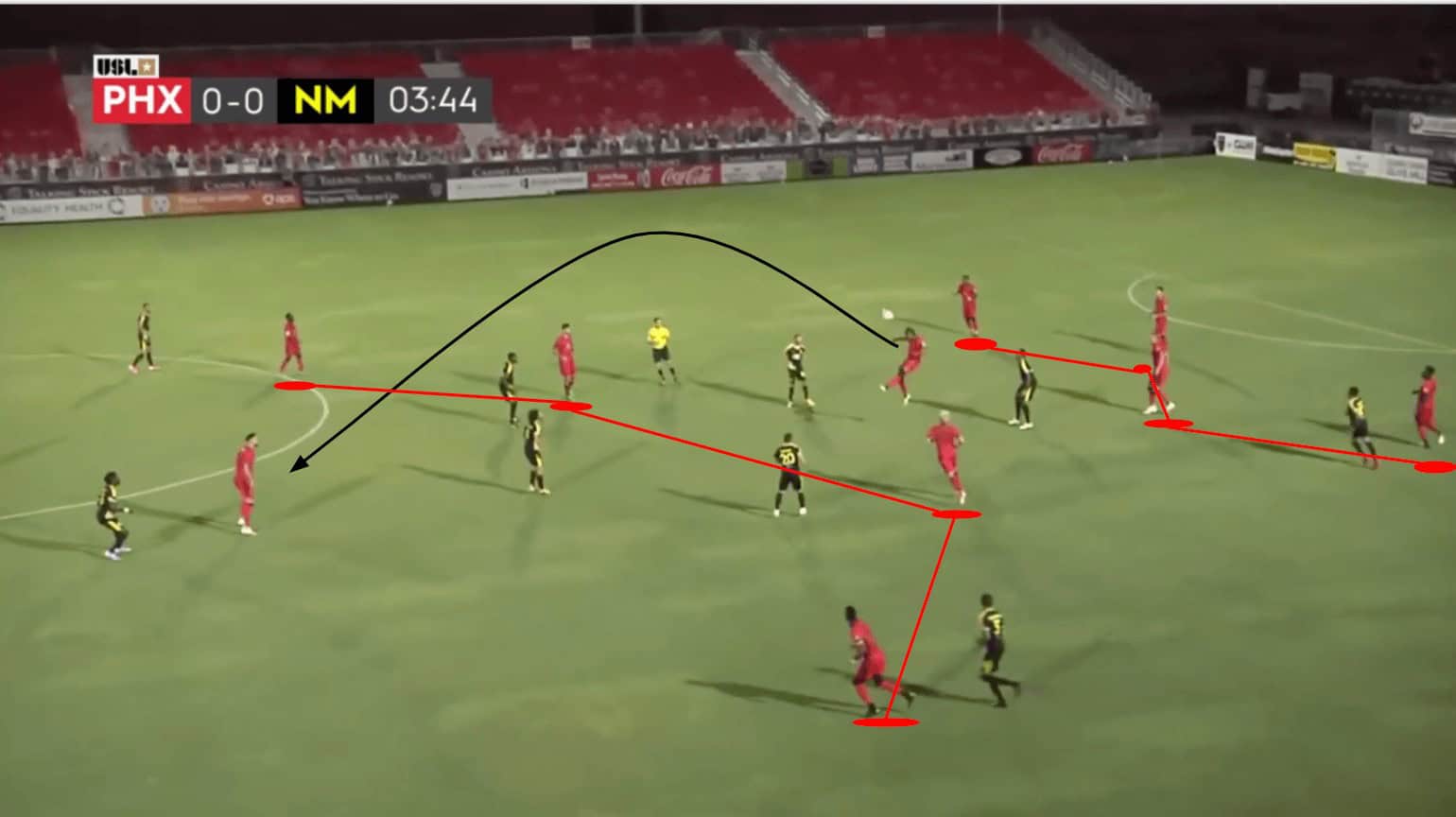Phoenix is a team that is deadly in transition, and a lot of that threat comes down to the speed of Junior Flemmings and Solmon Asante, who both start as wingers for Phoenix. That being said, in order to take advantage of their speed, precise passes from the midfield during a transition to attack need to happen on a consistent basis.