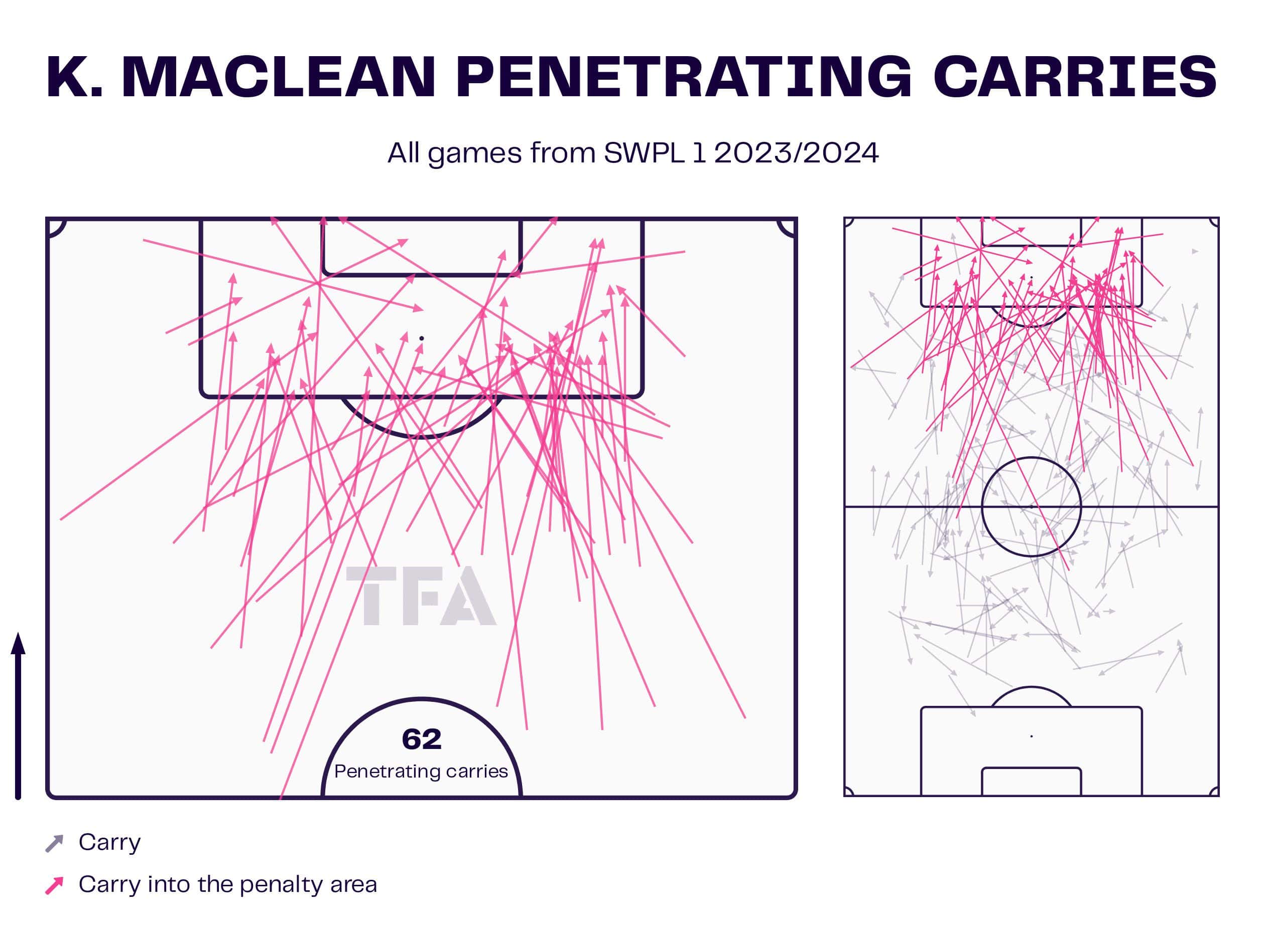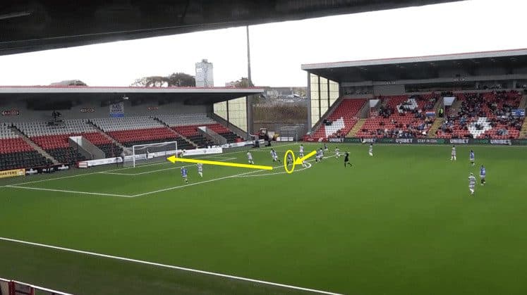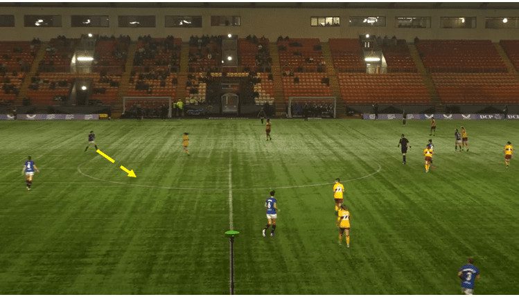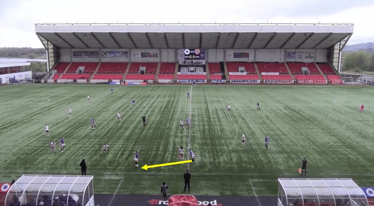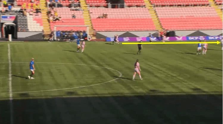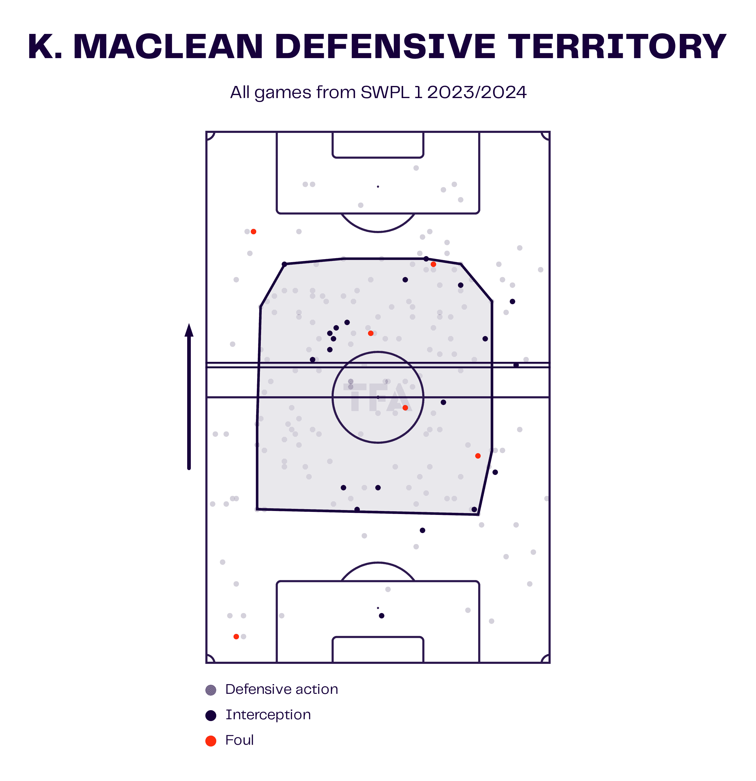 As you can see from the diagram above, Kirsty is asked to cover a wide range of space on the defensive side of the ball, which is an important part of how Rangers look to play without the ball.