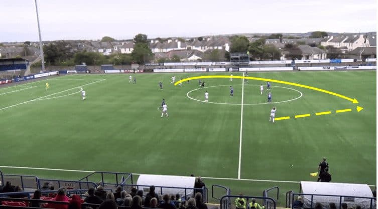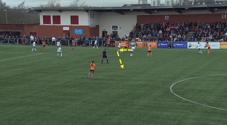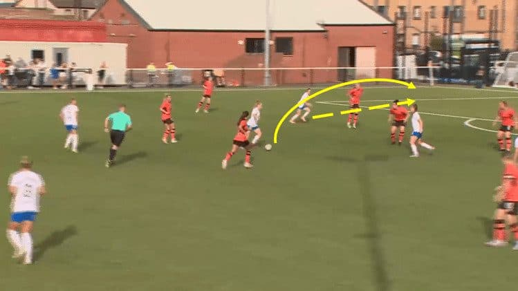 Above is an example of what Kirsty can do in wide situations when she plays combinations with teammates and makes off-the-ball movements to receive the ball back again.