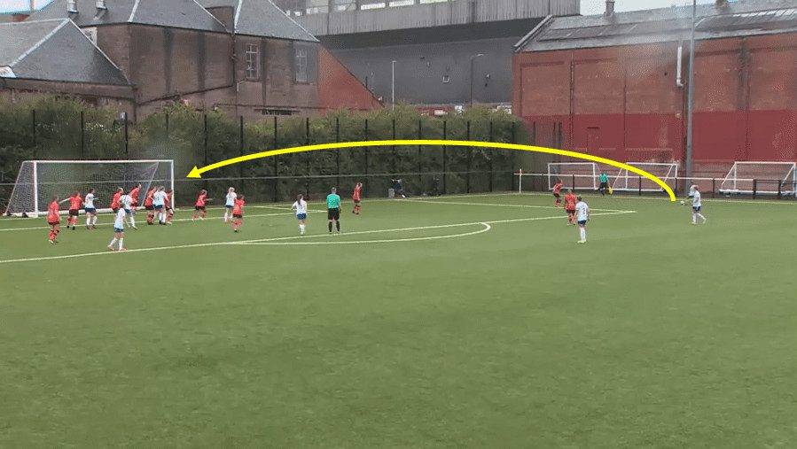 In the above example, Kirsty is going to play a lofted ball into the box.