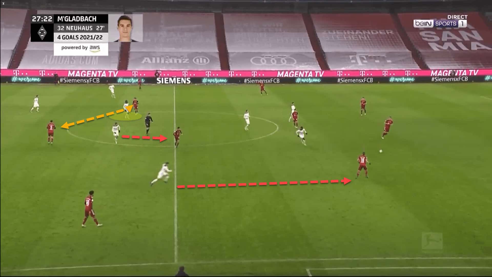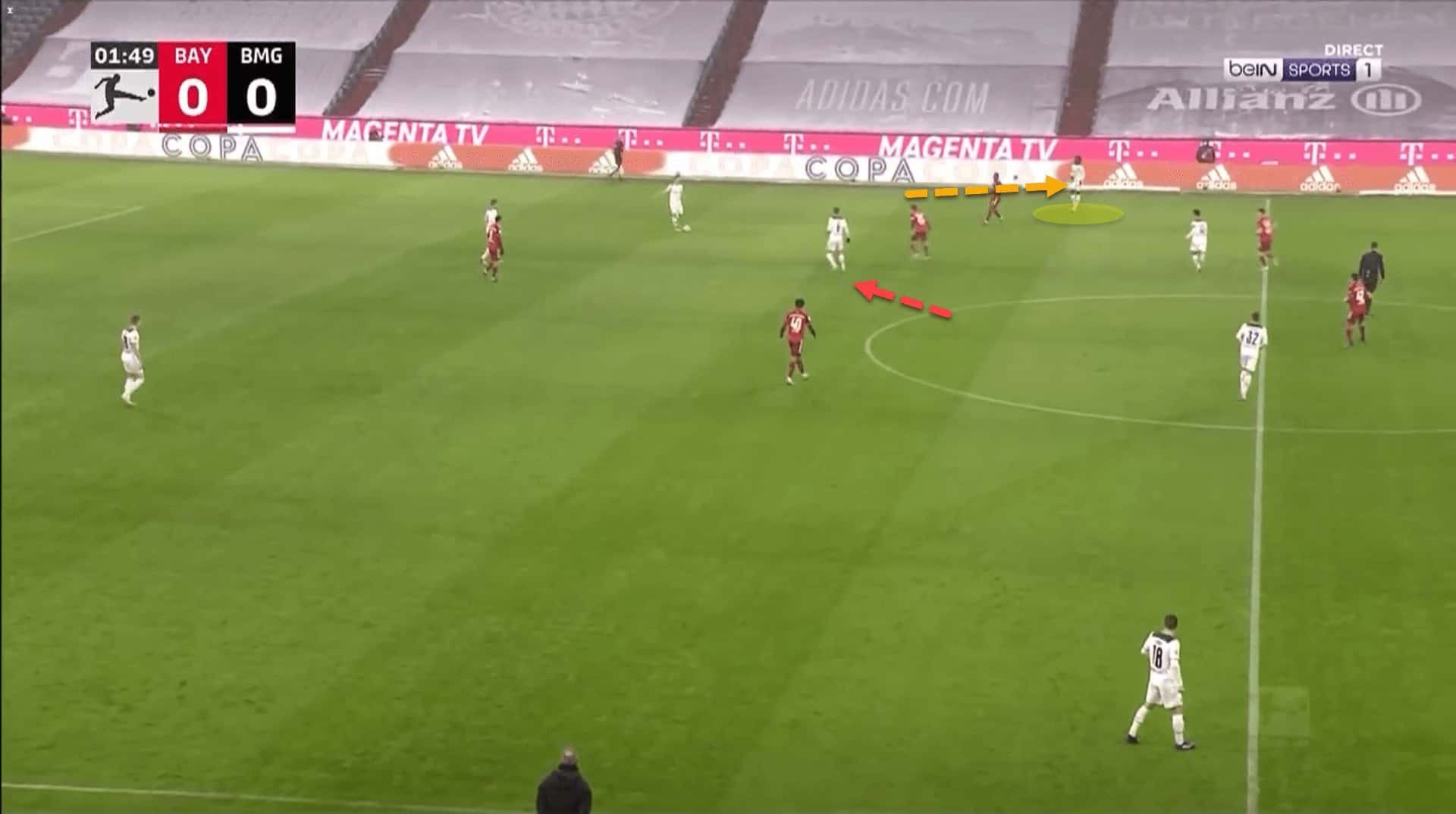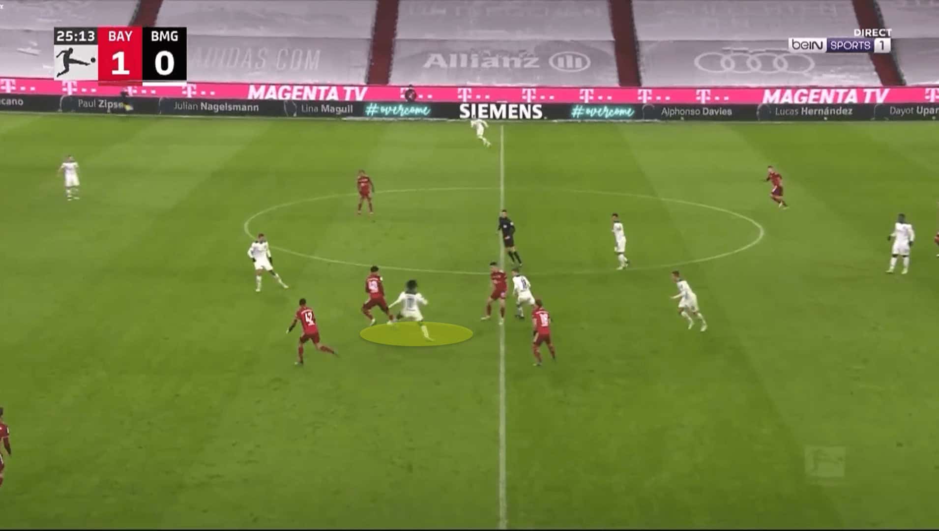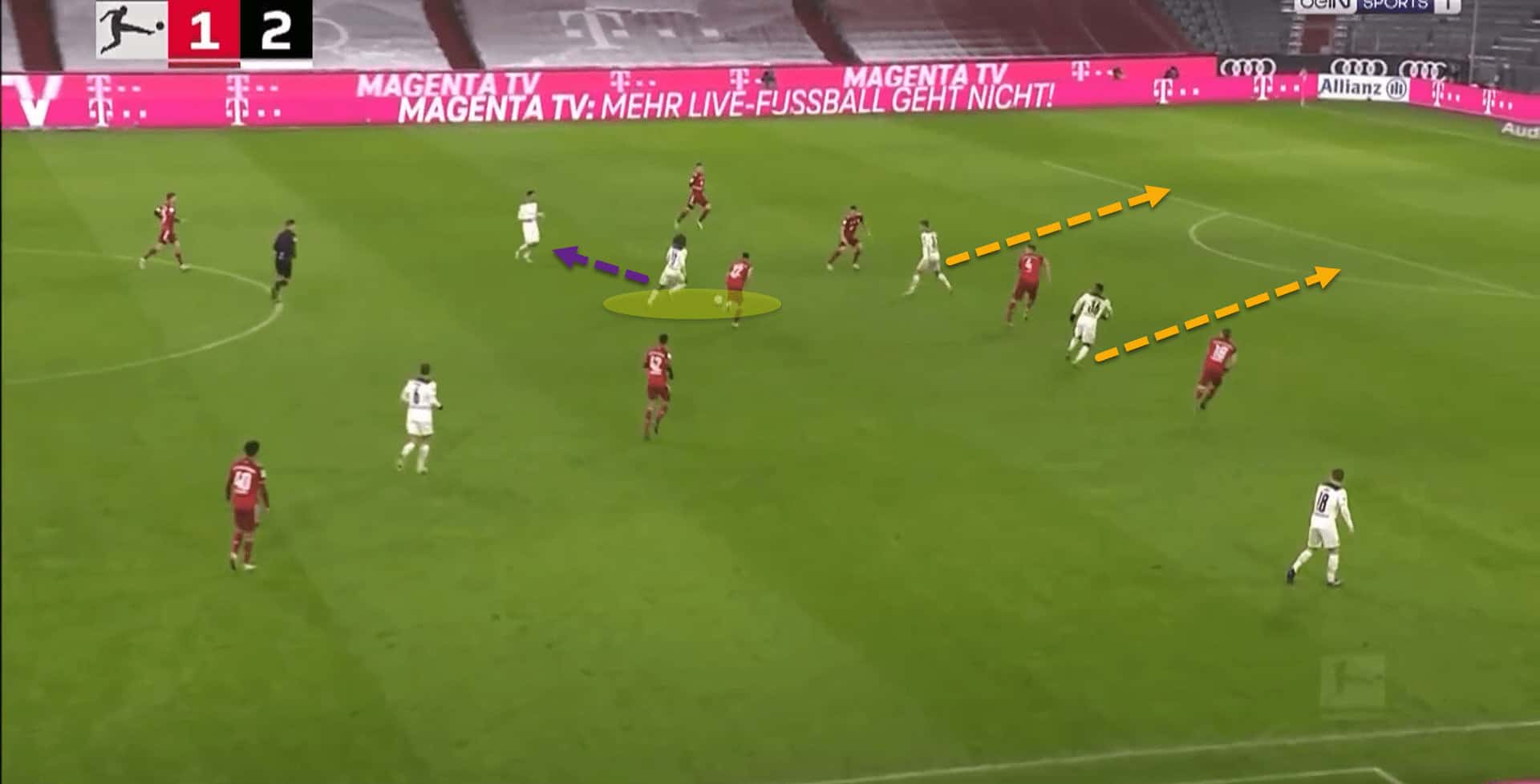 In this example, Bundesliga champions Bayern Munich had forced a turnover of possession.