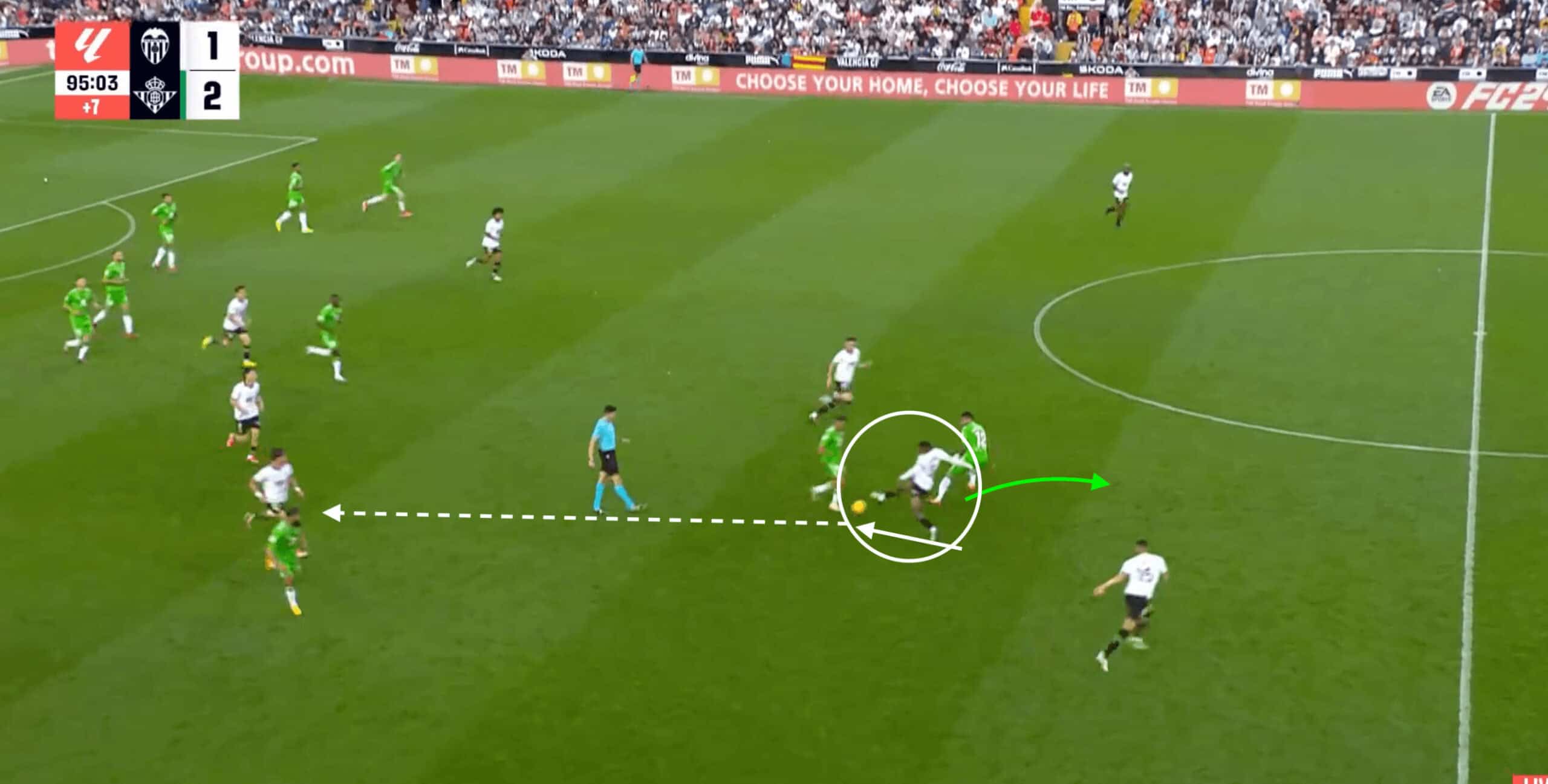 It must not be forgotten that this is all within a Valencia system, which completed the fourth-lowest number of progressive passes per 90 minutes in La Liga last season, with only 38.7 passes each match.