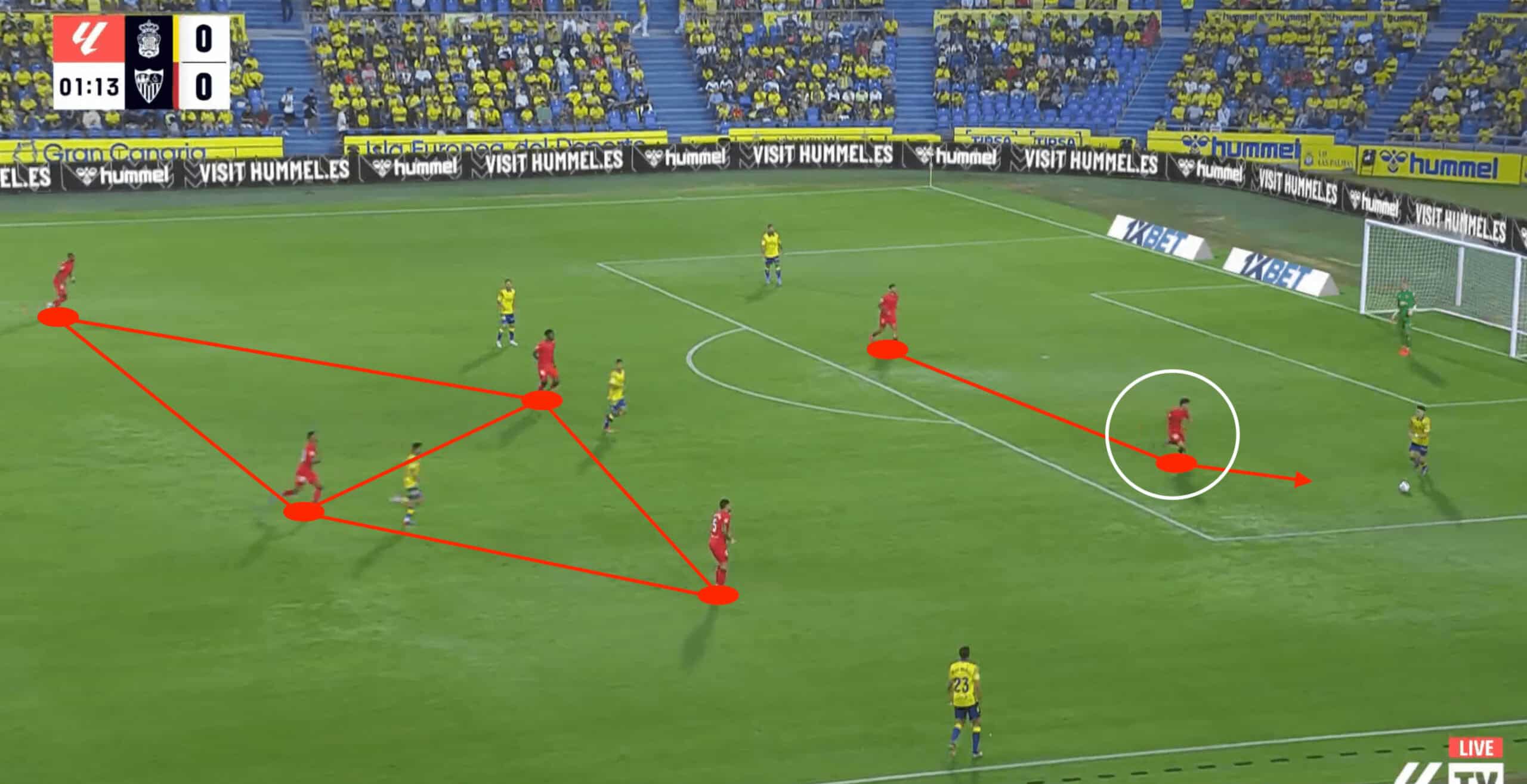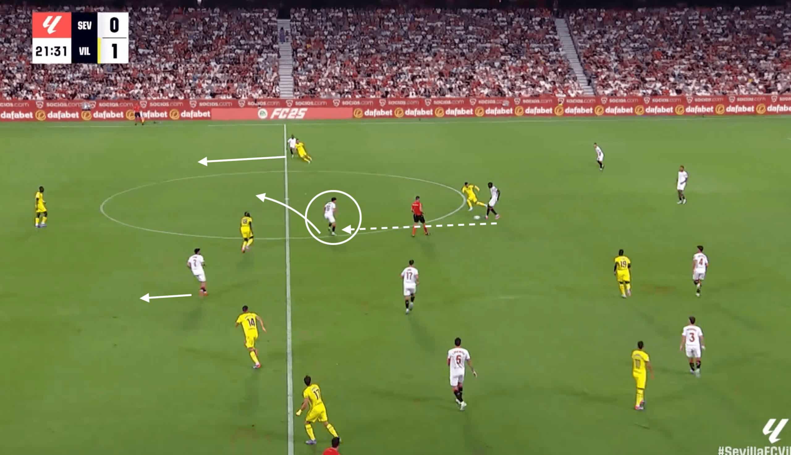 It signifies an increase in overall responsibility for Sánchez, who saw large amounts of Sevilla’s ball progression flowing through the young Spaniard with consistent positioning through the central areas and the right half-space.