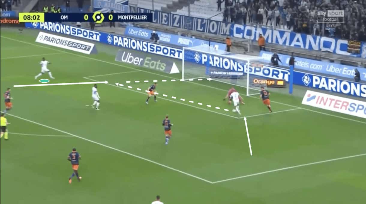From here, he’d be required to find space, receive on the half-turn and drive at the backline often, carrying creative responsibilities within the final third. He may end up making fewer progressive passes than he did at Angers in this role at Marseille but more dangerous passes and perhaps generating more direct goal contributions if he performs the role well.