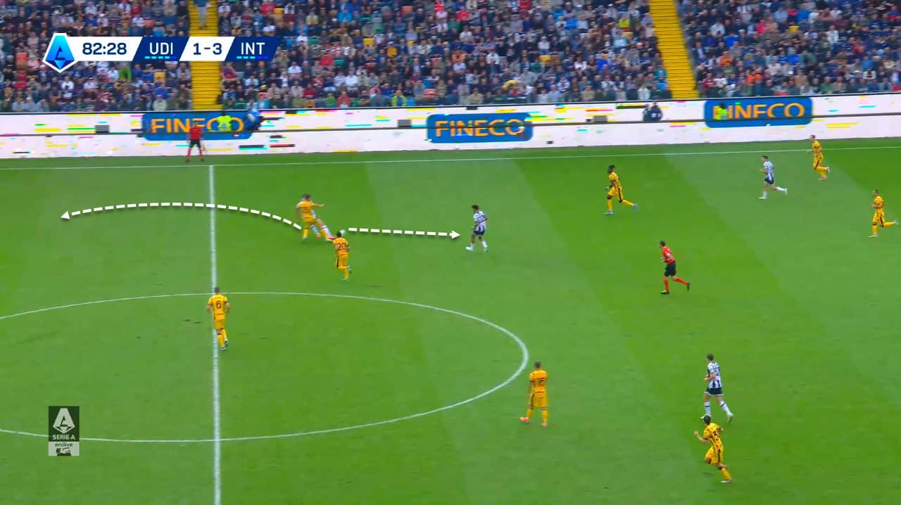 At the start of the action, Lucca noticed that Inter’s defence was high, and the possibility of launching a counterattack could be very dangerous.