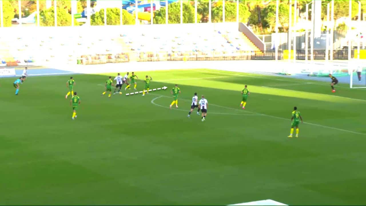 Furthermore, Lucca can create space for his teammates inside the box by retreating and providing passes, which would make things confusing for the opposing defence, as it did in the following example against Istra.