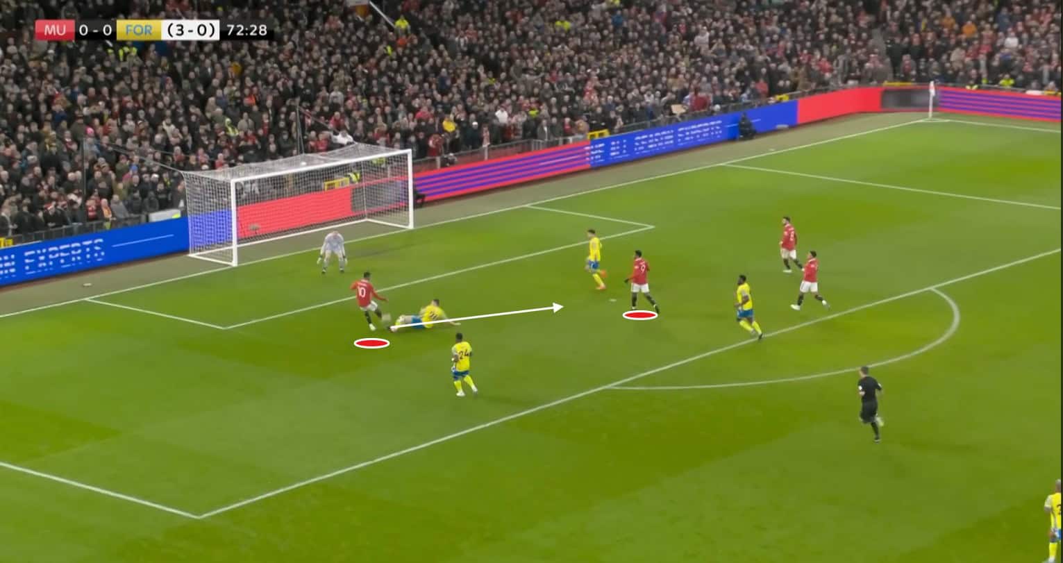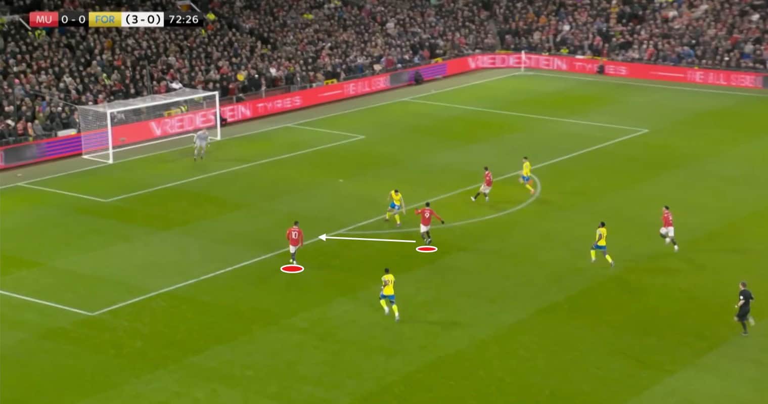 When Rashford moved into wider areas, Luke Shaw or Tyrell Malacia would invert into the half-space or overlap.