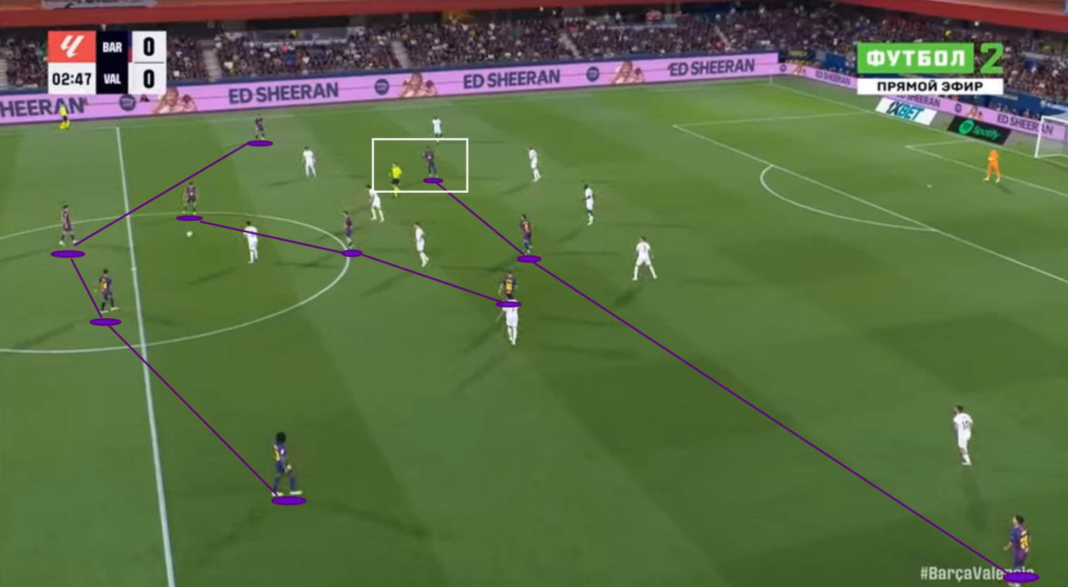 Balde/Martín’s tendency to invert into the half-space provides underlapping support, freeing Rashford to isolate defenders one-on-one.