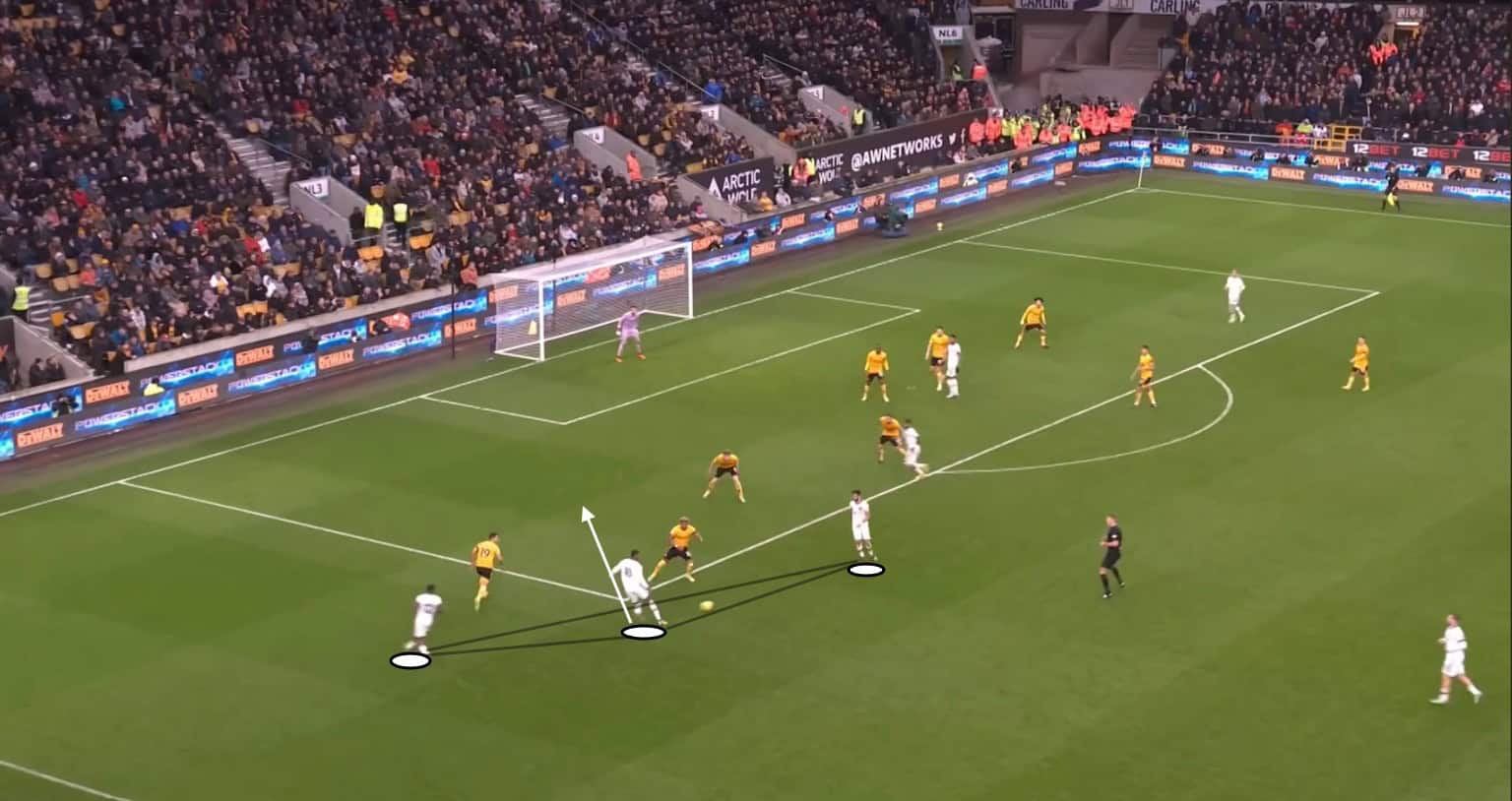 Instead, he is devastating when he can time runs into the left half-space, receive in advanced positions, and combine with overlapping or underlapping teammates.