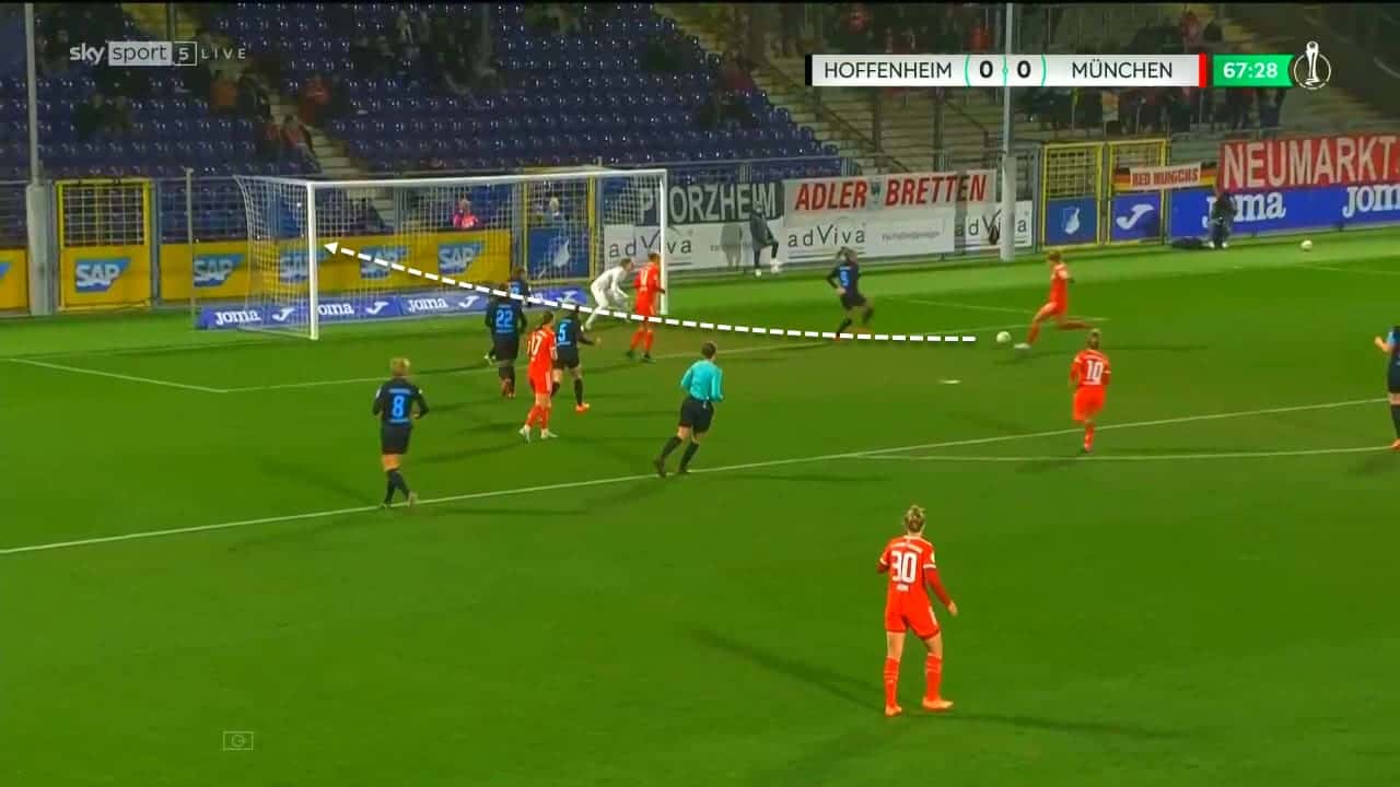 But in terms of crossing/passing accuracy, she has got the highest rates in the Frauen-Bundesliga and that’s one of the reasons why she is holding a regular spot as a RB at a team like Bayern Munich and can potentially move to any other big club like Chelsea, Barcelona, PSG, Juventus or others.