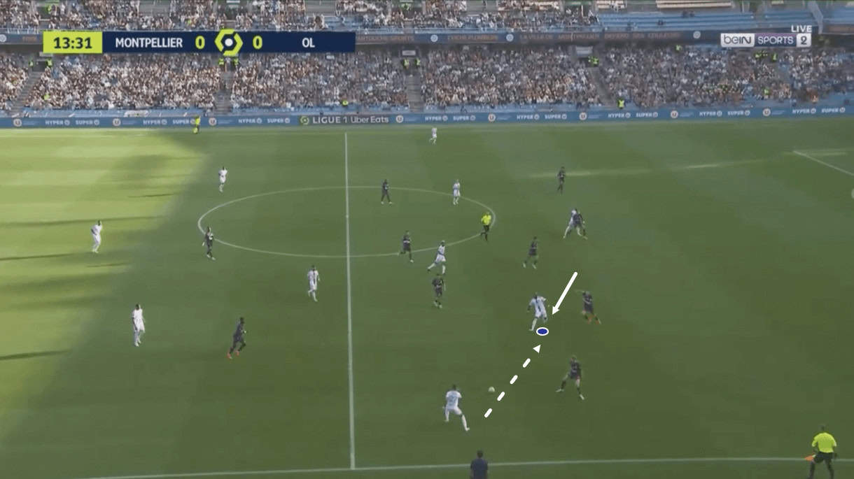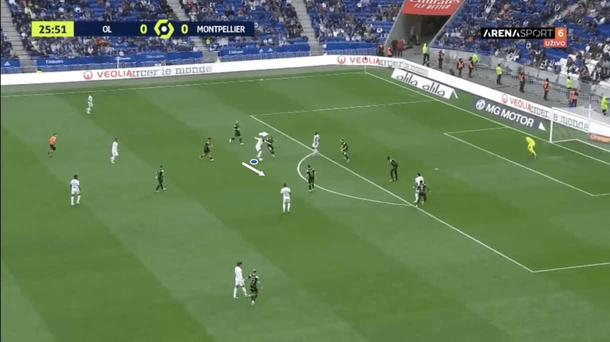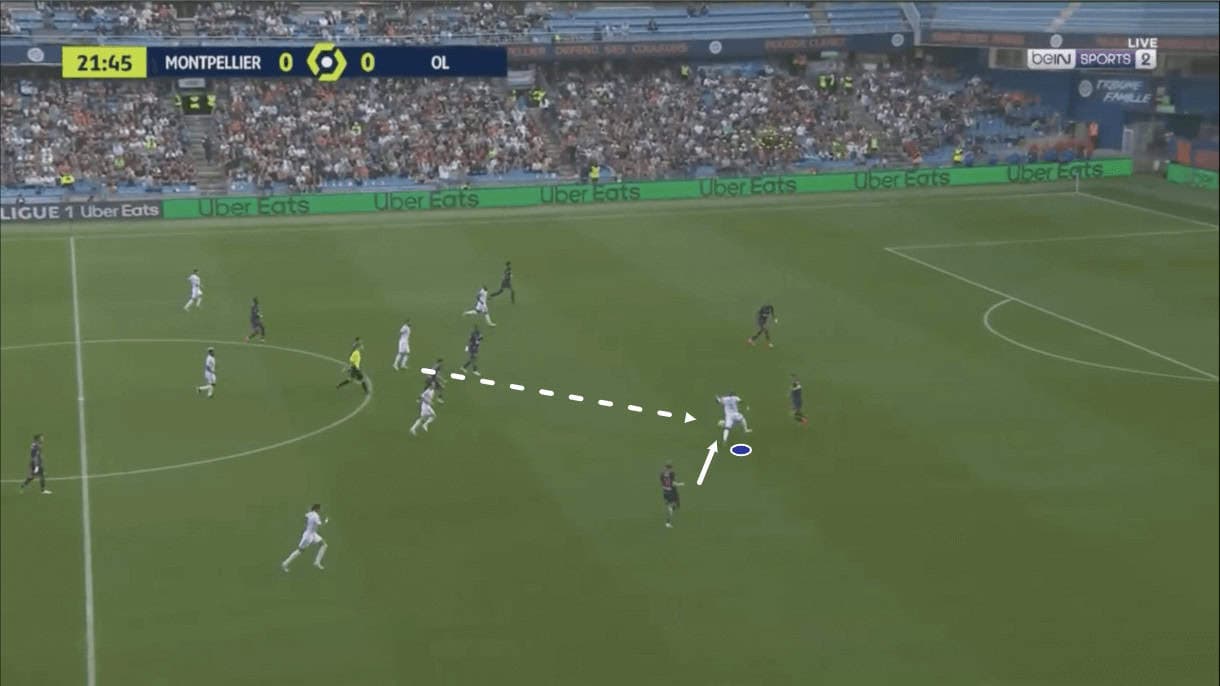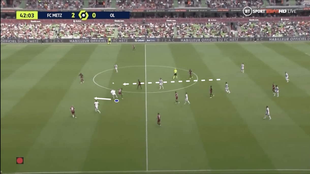 Regardless of the result on this occasion — they’ll never work out perfectly all the time — it’s clear how Dembélé’s physicality and aerial duel ability provide an excellent outlet for the team to progress the ball upfield and quickly put the opposition’s backline under pressure; this is an excellent outlet for Les Gones.