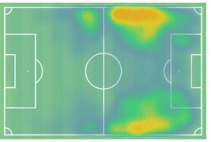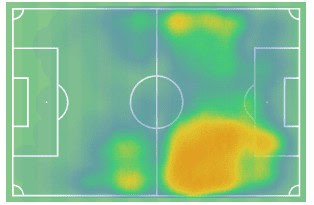 Positionally you can see his movement and the spaces he looks to occupy. You can see how he features heavily on the right-hand side but not just in the one zone. He moves between playing on the outside and playing on inside and controlling the half-space.