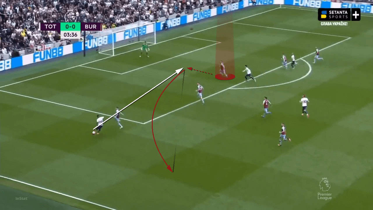 The image below shows how the 21-year-old has identified that the cross is about to come in and, therefore, sprints into the space where he can clear the ball away,