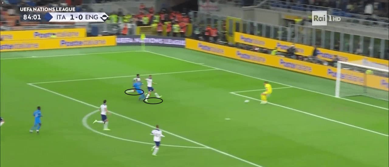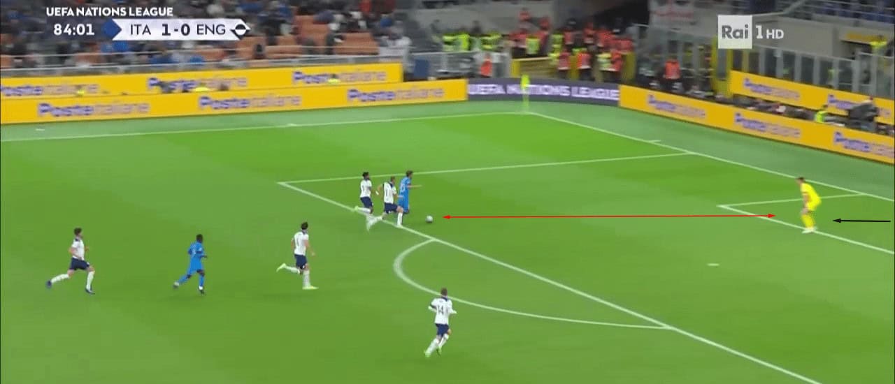 In the one-on-one opportunity against Italy, he could rush out and pressure the striker.