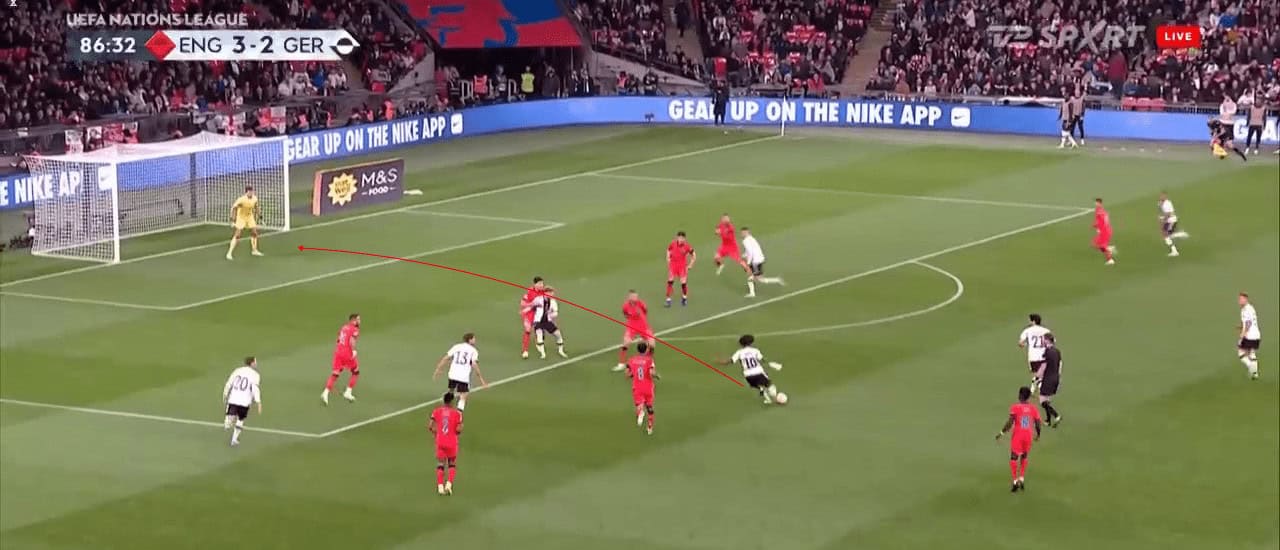 Although his passing has massively improved, when he plays for England we can see that this is still his biggest weakness. This might be what keeps him out of their starting line-up for the upcoming World Cup.