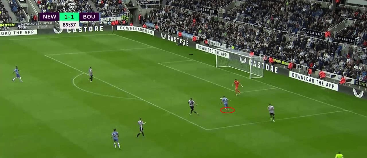 In this example against Bournemouth, we can see that Pope is in a situation where he’s immediately under pressure from the opposition.