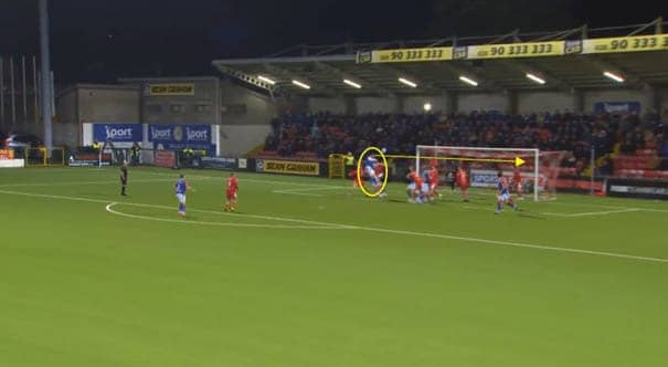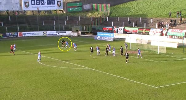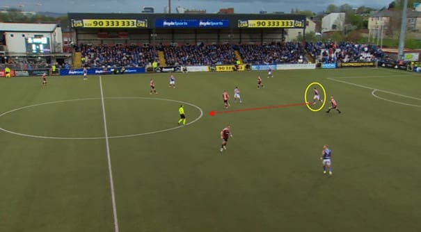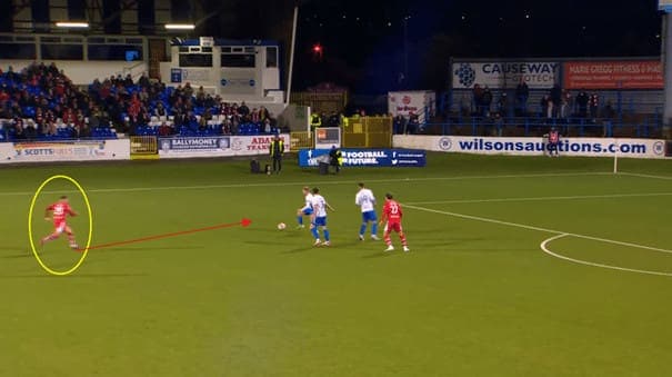 When Cliftonville wins the ball back, he is quick to make runs in behind, using his pace to get behind the opposition’s defence.