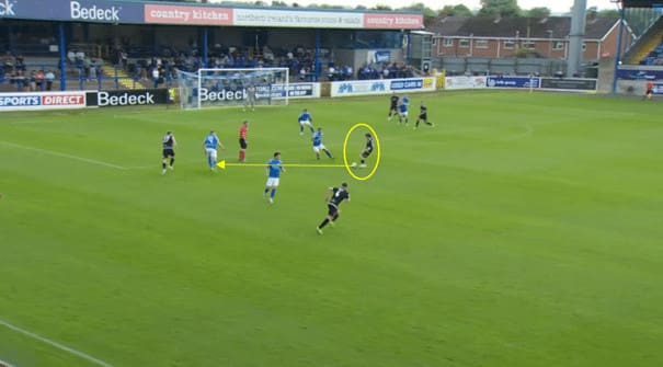 In this example, Taylor breaks from midfield to pressure an opposition centre-back.