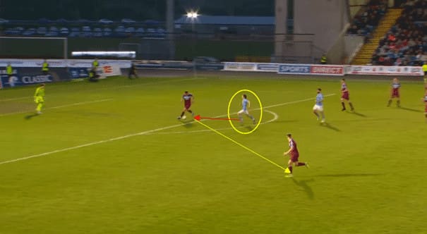 In this example, Finlayson is playing as the central centre back in a back three.