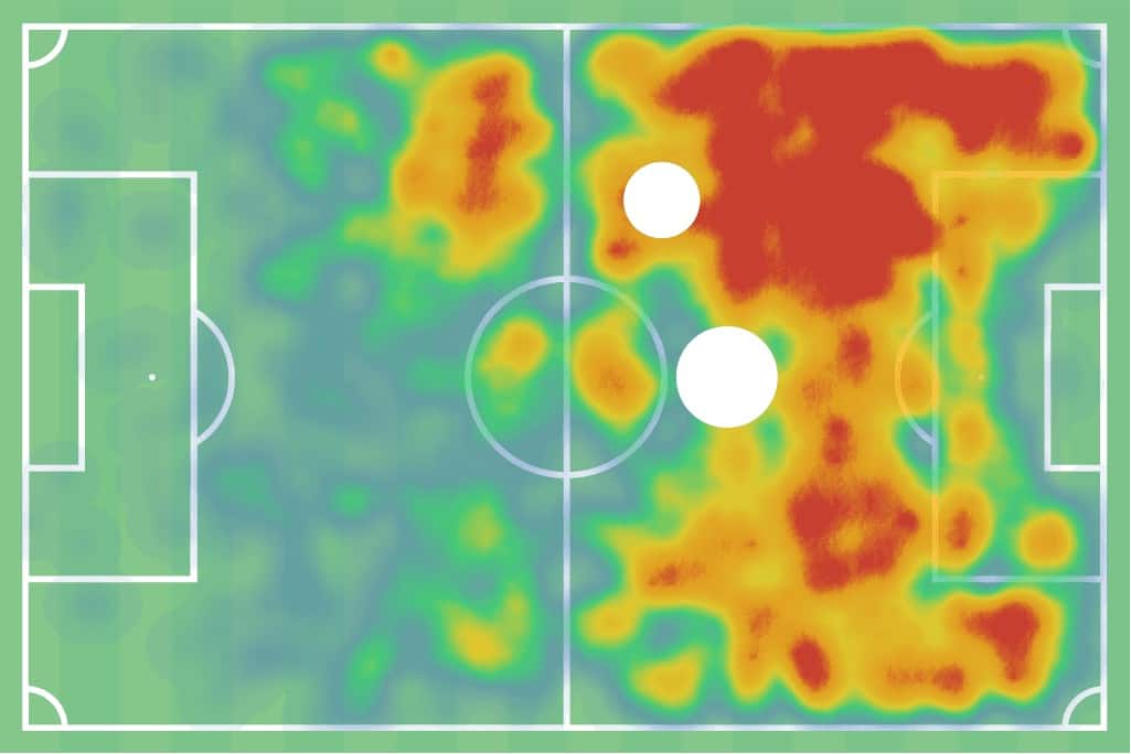 Nikola Vlašić is 23-year-old who plays as attacking midfielder, but over the course of his career especially with Hajduk, he played all positions above defence. Over his career, he profiled as a player who can make a bigger impact while playing in central roles because it gives him the freedom to roam over the pitch finding open spaces to receive the ball from where he can hurt opponents. On his heatmap below, we can see that even though he played as LCM and AM he has activity all over the field, especially in half-space near the left side.
