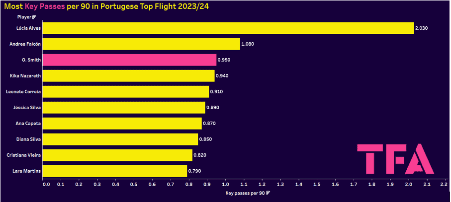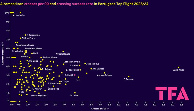 However, Smith is not just a leading performer in her passing; her crossing is also a strong weapon in her arsenal.