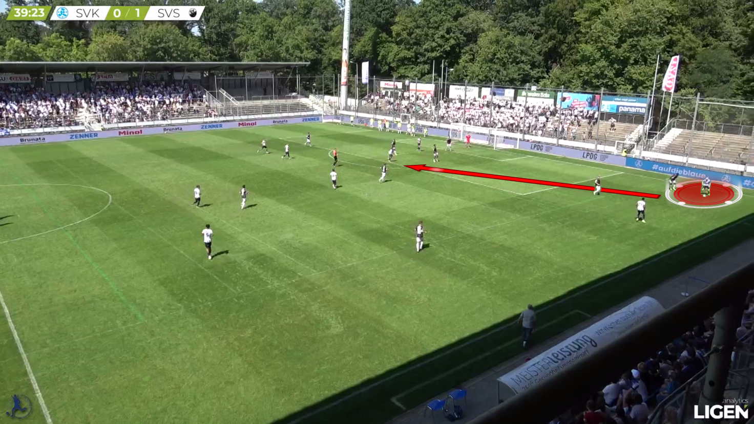 Oskar Hencke demonstrates great vision in this situation and plays a very good pass in the penalty area from a disadvantageous position.
