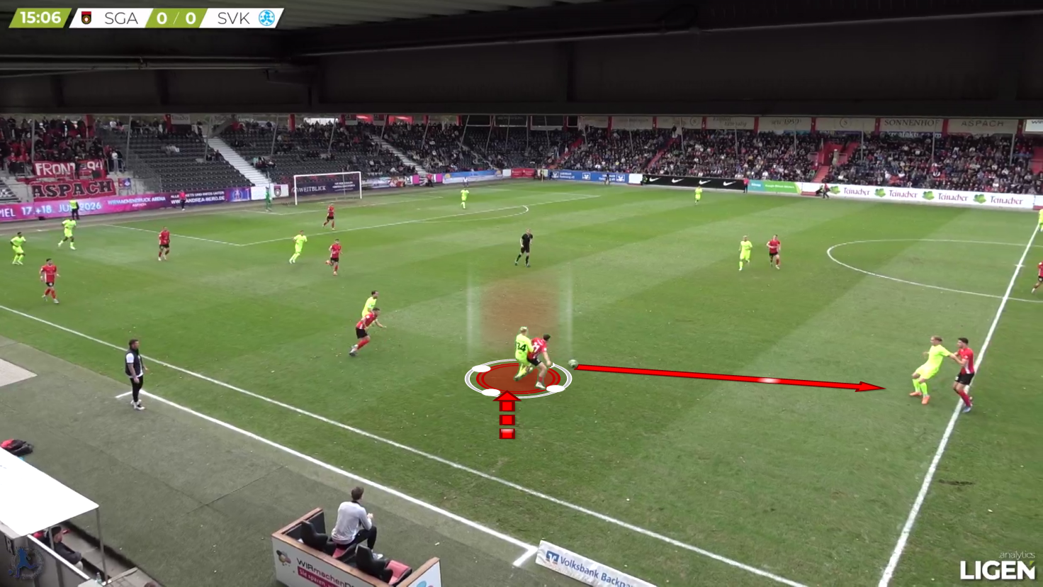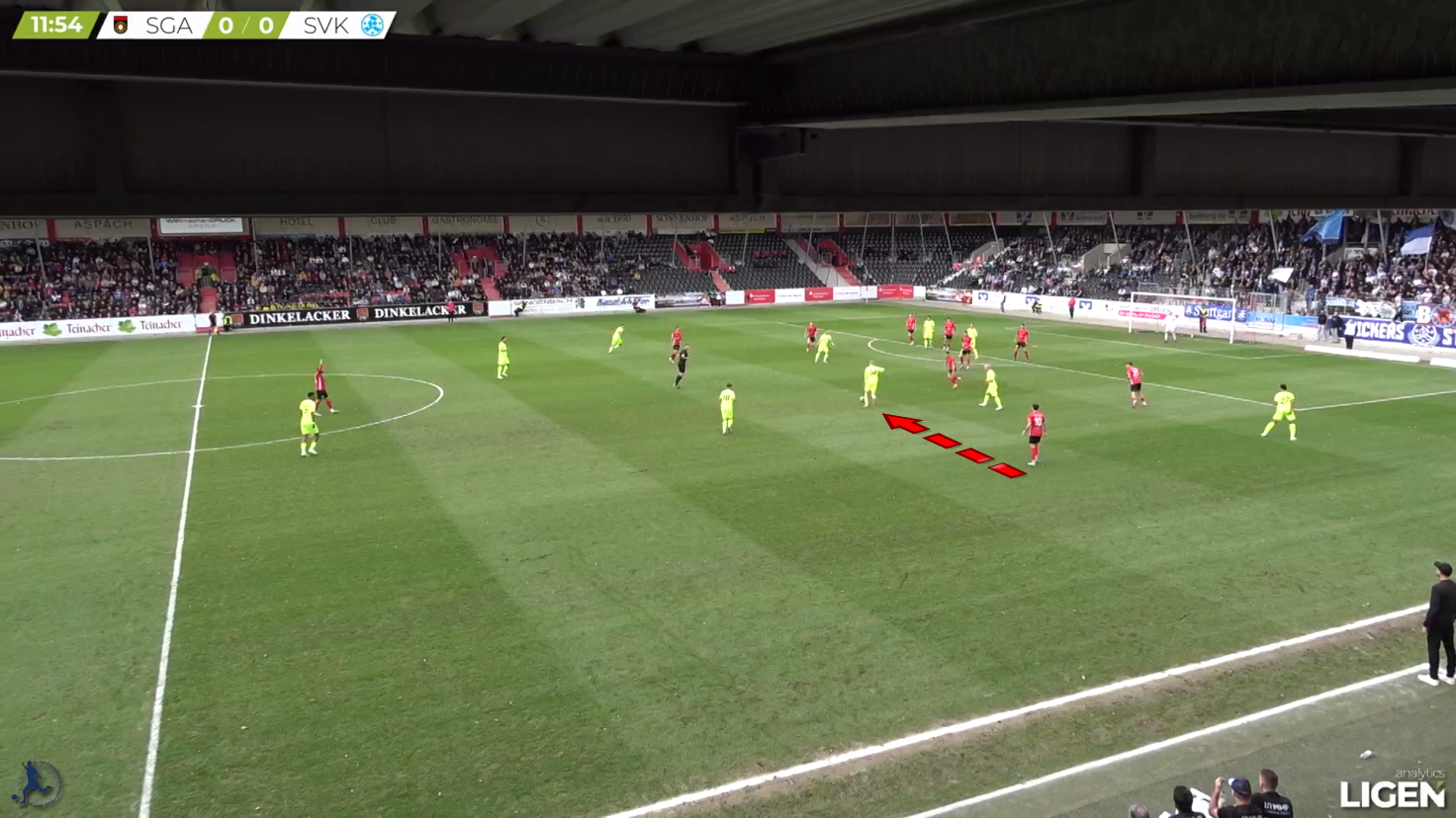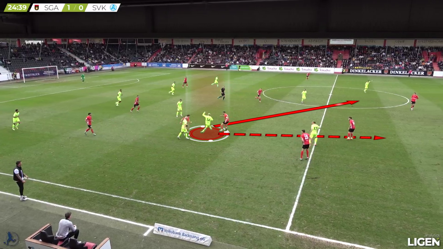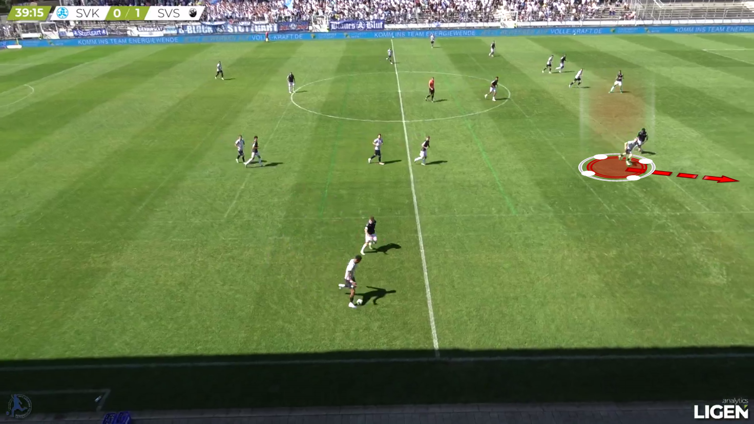 Here, the pass gets played into the other direction, but Hencke quickly shifts to the inside and covers off the diagonal passing option.