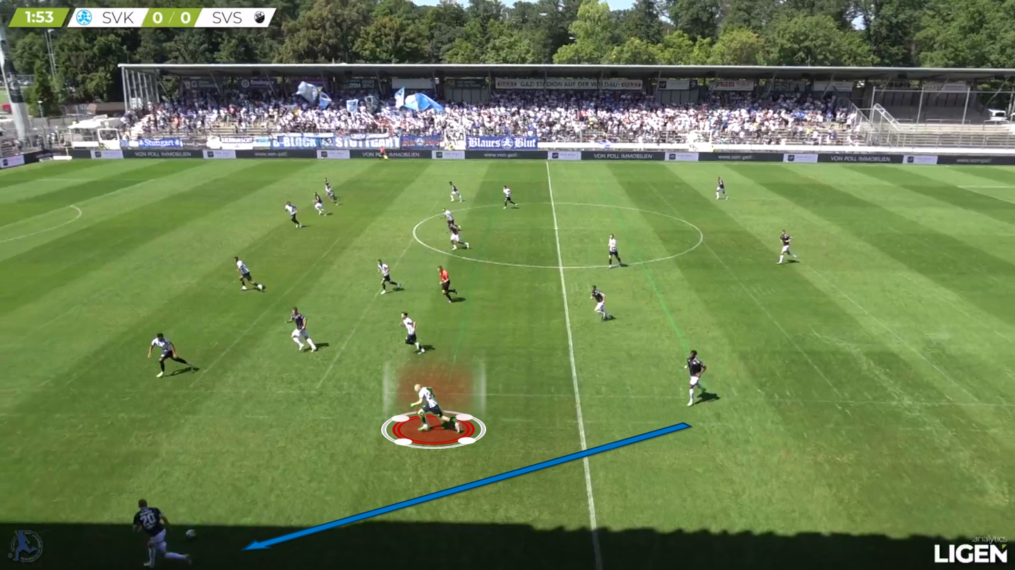 While his current impact may come more from defending than from attacking, the talent that has drawn multiple Bundesliga teams, including Kickers’ in-city rival VfB Stuttgart, to Oskar Hencke lies in his on-the-ball ability.