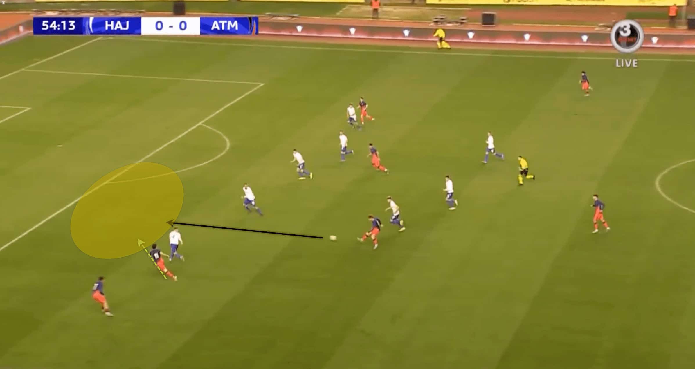 In addition to his playmaking skills, Barrios’ vision to go into defenders’ shoulders and threaten the space in behind is something to watch for. Atlético should be delighted for his willingness to attack the depth and run forward.
