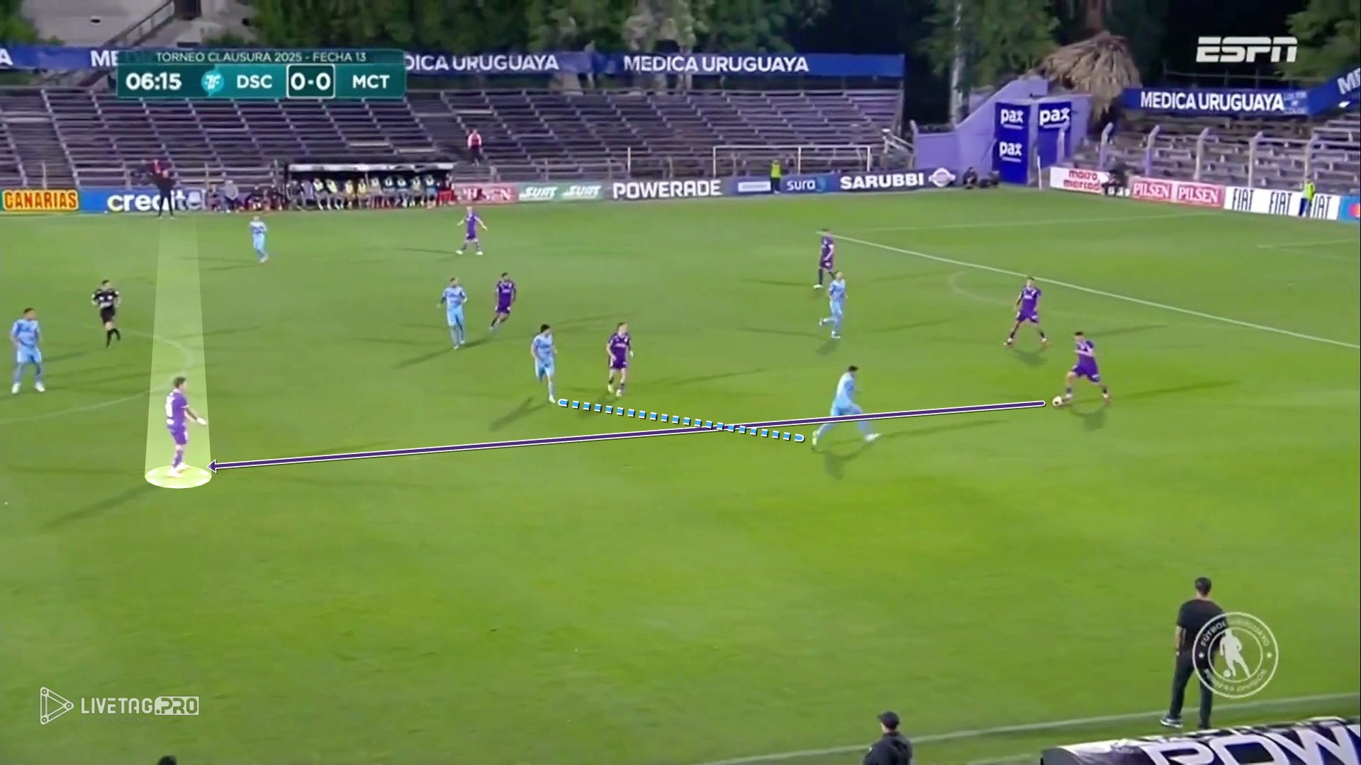 From the flank, Pacífico transferred principles typical of the modern centre-back: open body shape, clarity in first-pass play, ability to manipulate pressure, and ball-carrying under pressure.