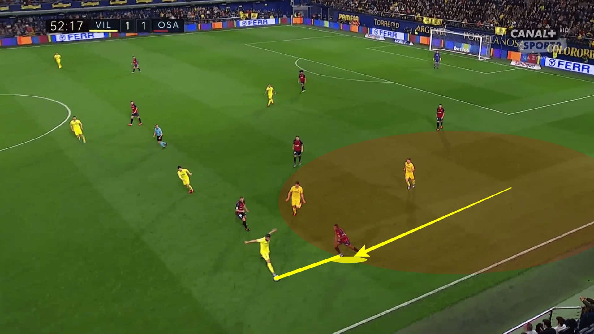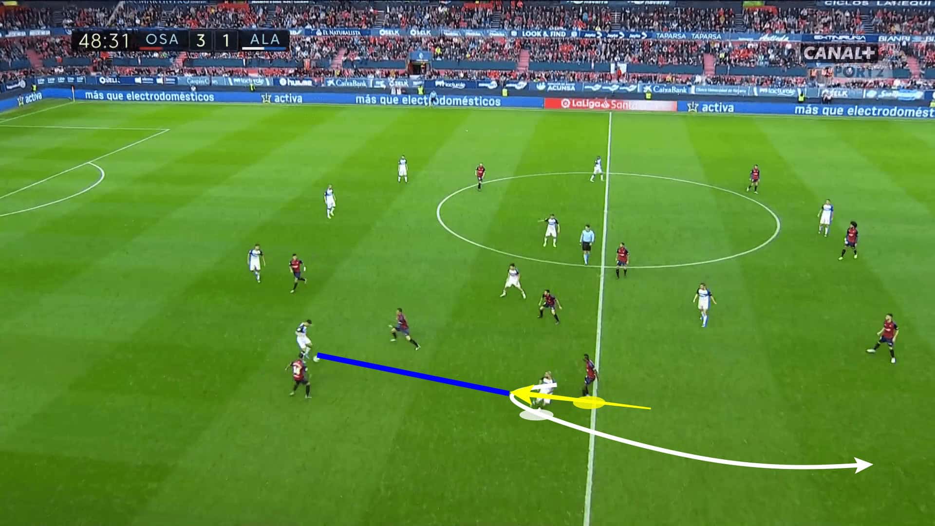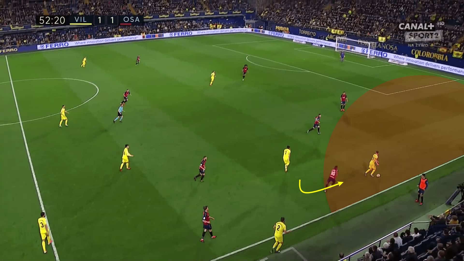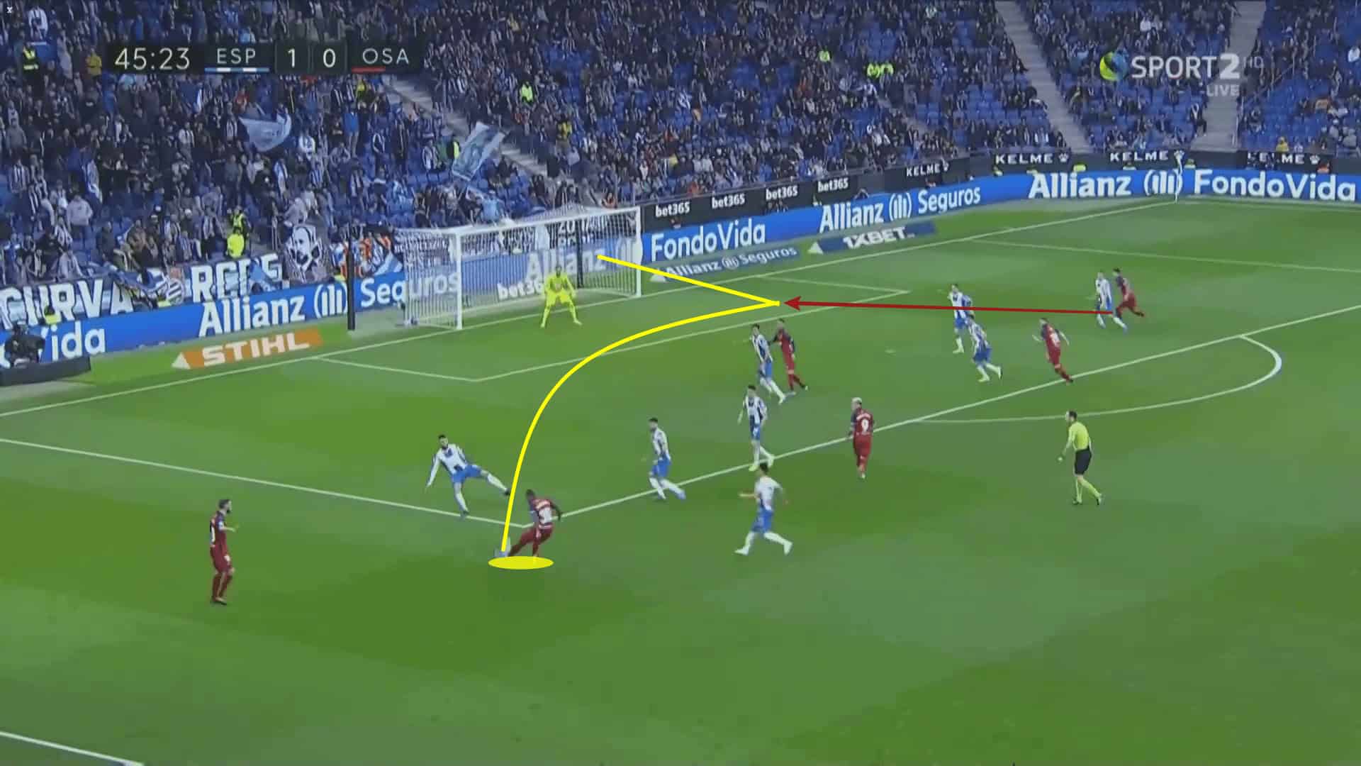 With Osasuna packing central areas and preferring to give freedom to few players out wide, this is possible and easy to achieve with the central areas so well-stocked that there is no need for him to drift centrally at any time.