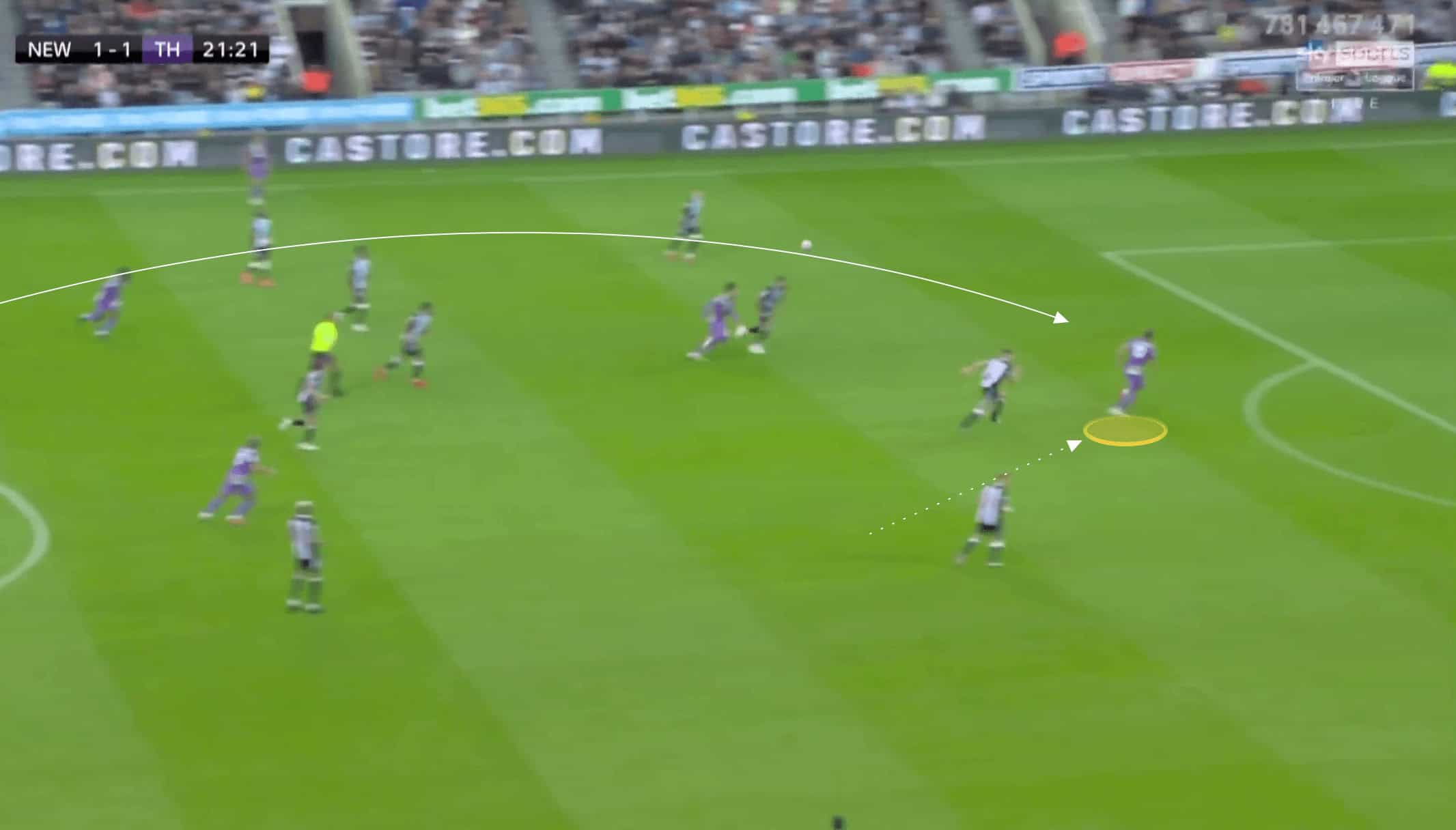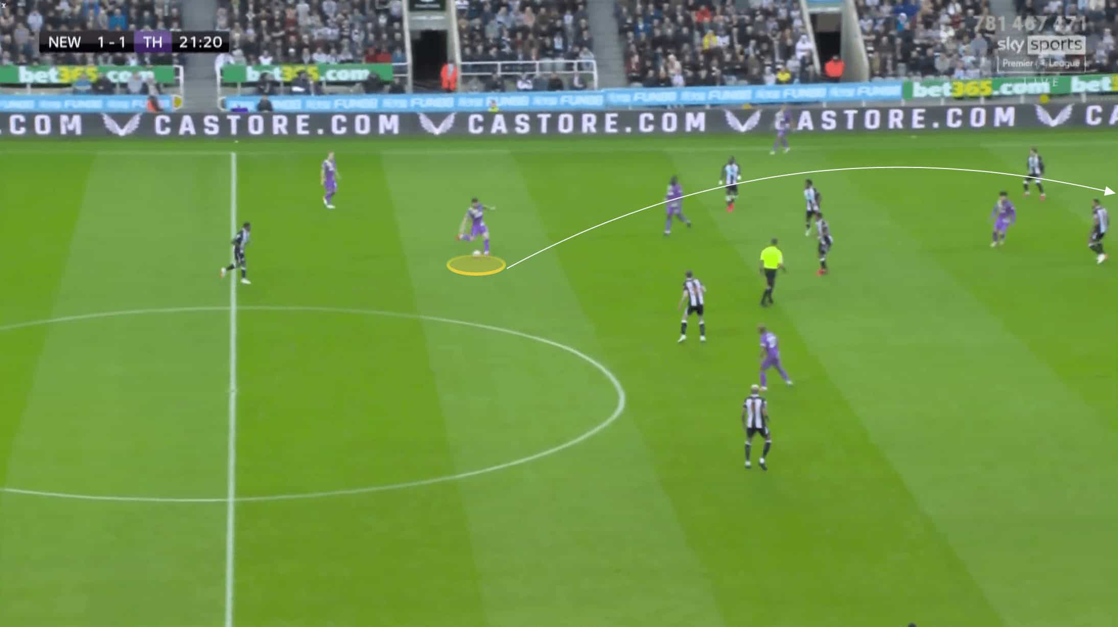 With the second pass shown, against Newcastle, he had far more time in possession and simply caressed the ball over the top of Newcastle’s defence for Harry Kane to run onto.