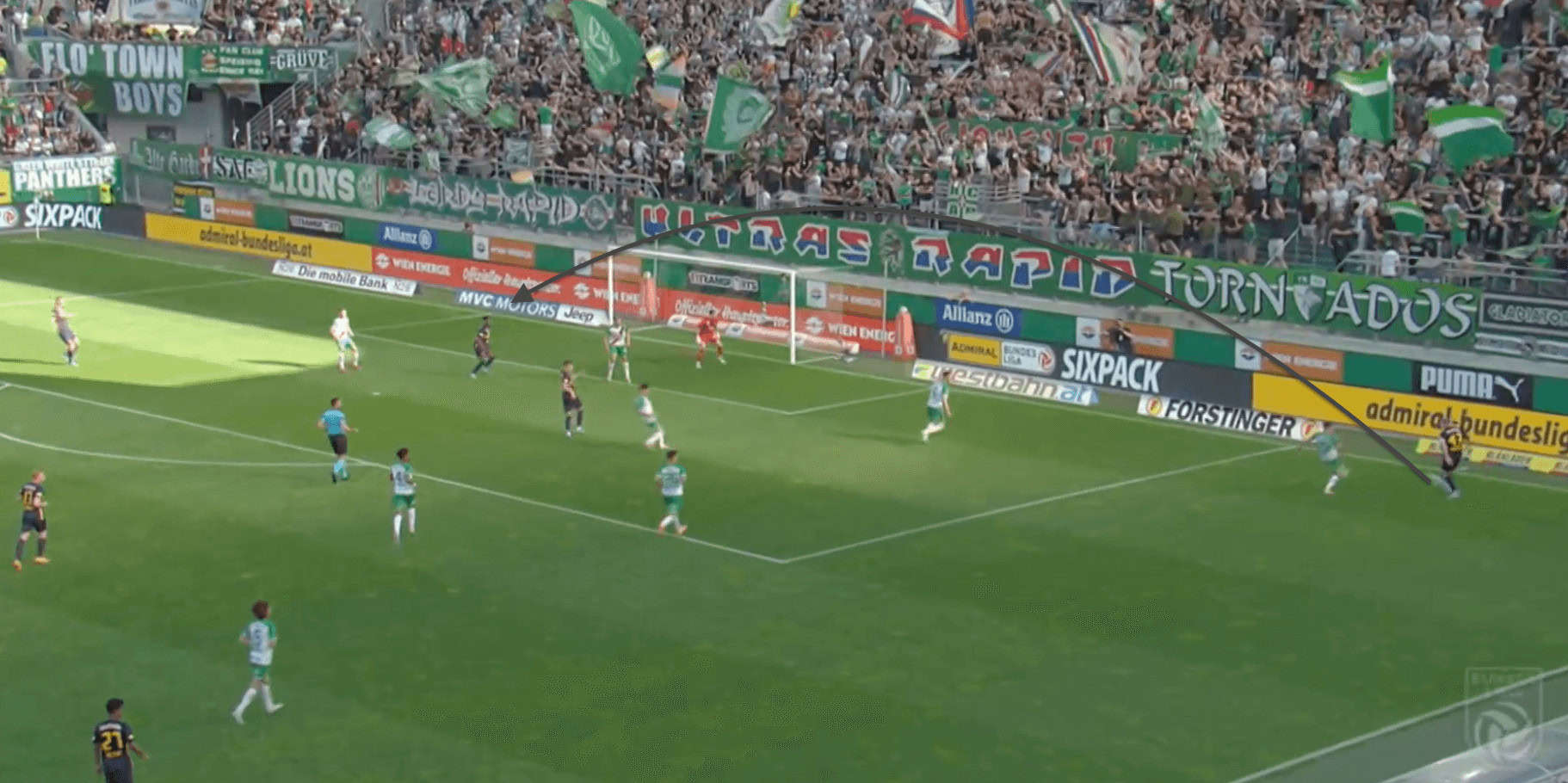 In this image above, we can see him playing a very good low cross this time, which is aimed exactly at the feet of his teammate and he was able to score a goal from this opportunity. His variety in terms of his crossing ability is his biggest strength in possession for his side.